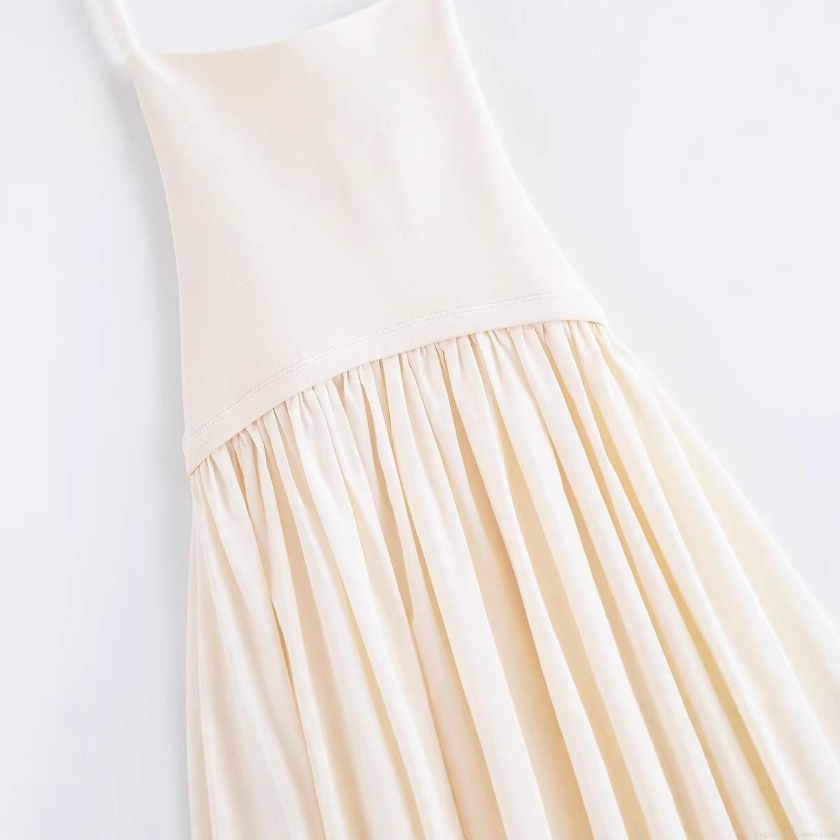 Solid Color, Splice, Pleats, Neckband, Backless
