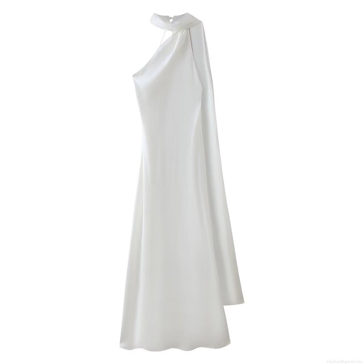 • Women's Elegant Halter Neck Satin Maxi Dress Sleeveless Backless Long Evening Party Dress Solid Color Silk Texture Slim Fit Formal Gown For Wedding Prom Cocktail
