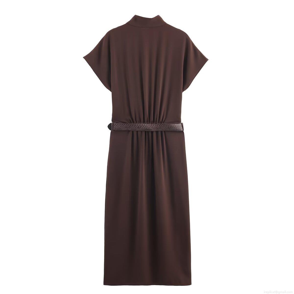 • Women's Elegant High Neck Maxi Dress With Short Batwing Sleeve Gold Metal Buttons And Crocodile Pattern Leather Belt Solid Color Bodycon Long Dress For Party Social Evening