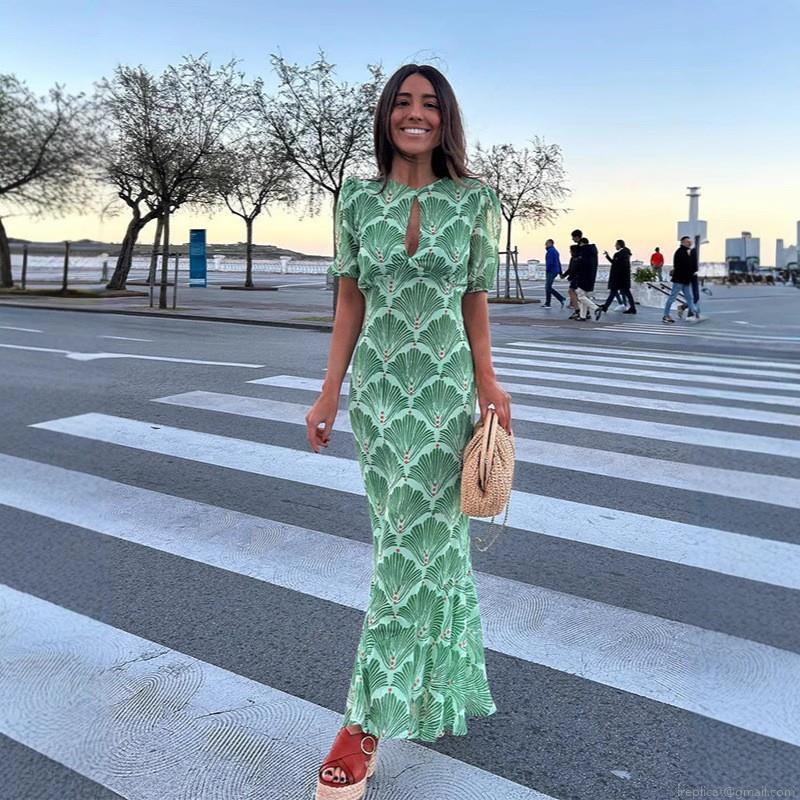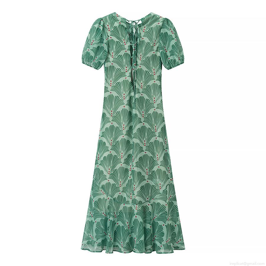 • Women's Elegant Hollow Out Print Maxi Dress Puff Short Sleeve Backless Lace Up Chiffon Style Polyester Long Dress For Vacation Party Ladies