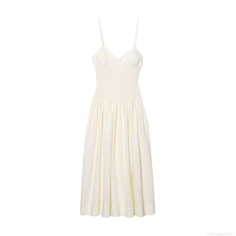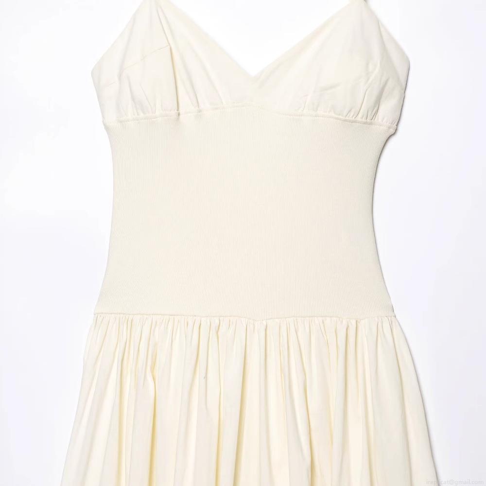 • Women's Elegant Ivory Strappy Maxi Dress V-Neck Hollow Back Ribbed Patchwork High Waist Poplin Long Dress For Evening Party Celebrity Sexy
