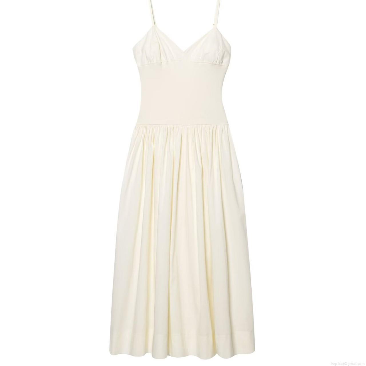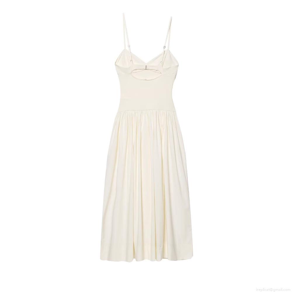 Women's Elegant Ivory Strappy Maxi Dress V-Neck Hollow Back Ribbed Patchwork High Waist Poplin Long Dress For Evening Party Celebrity Sexy