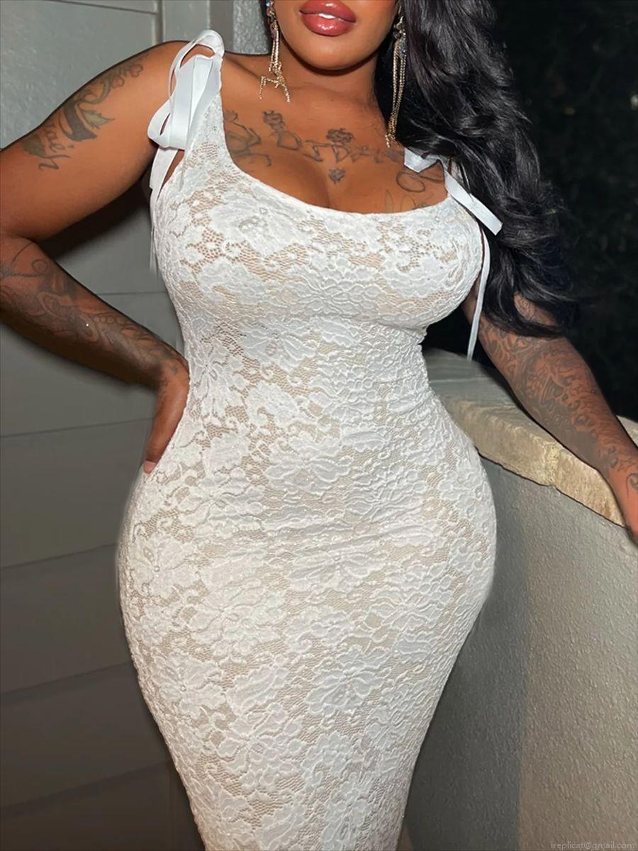 • Women's Elegant Lace Backless Maxi Dress With Satin Bow Tie Straps Sexy Slim Fit Polyester Spandex Long Evening Dress For Party Wedding Dating