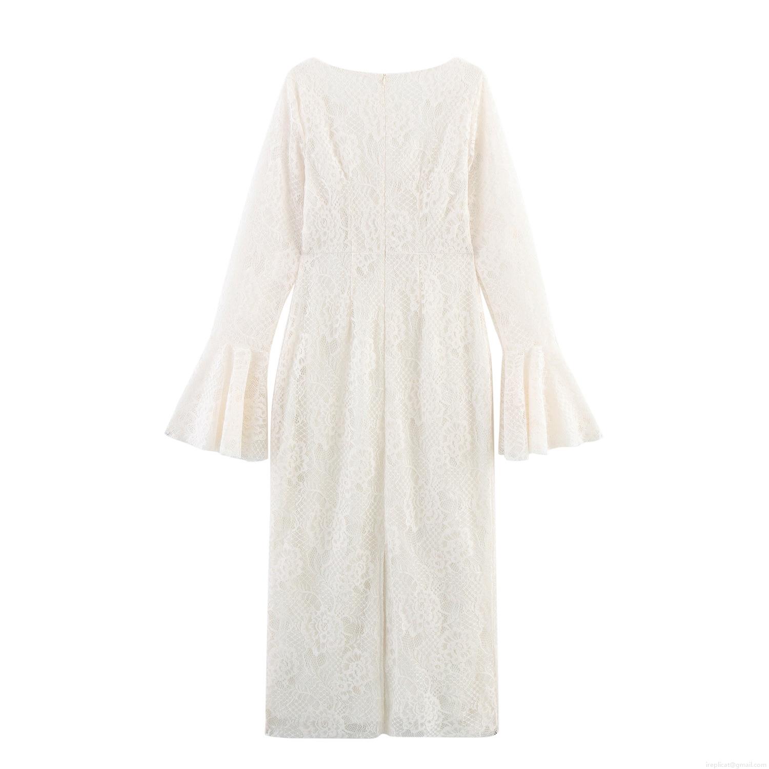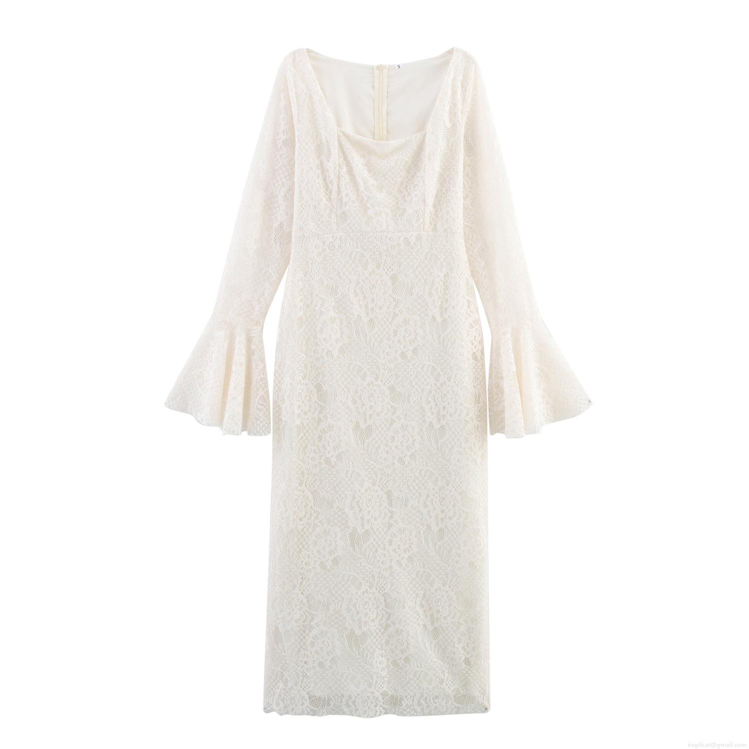 Women's Elegant Lace Polyester Maxi Dress Square Neck Flare Long Sleeve Slim Fit Bodycon Style For Party Wedding Elegant Lady Sexy Dress