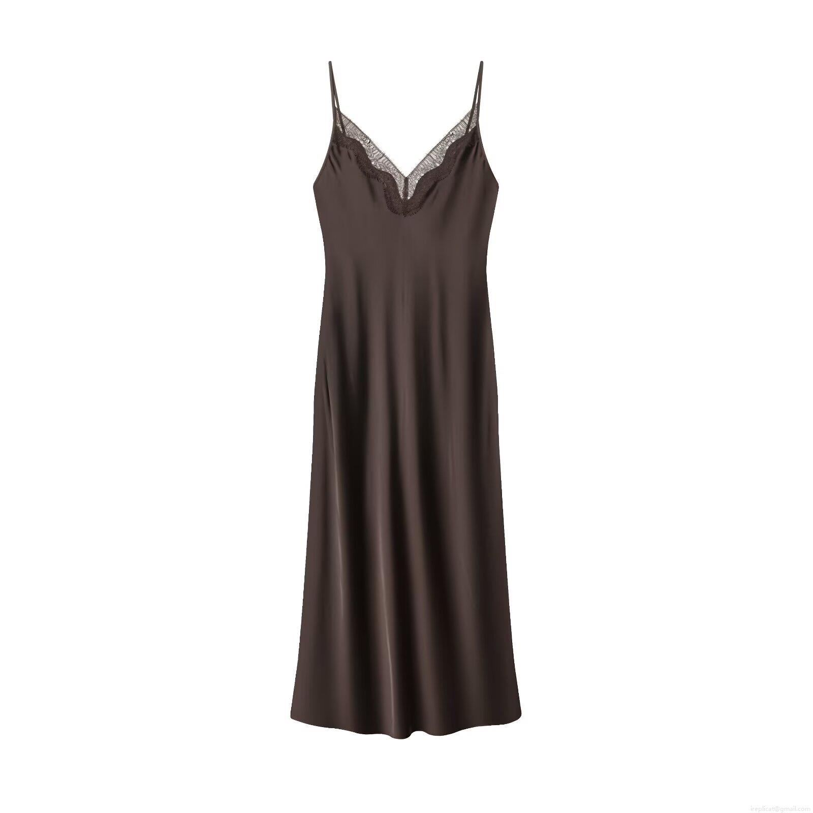 • Women's Elegant Lace Stitching V-Neck Slip Dress Sexy Backless Acetate Satin Maxi Dress Summer Sleeveless Party Evening Nightgown