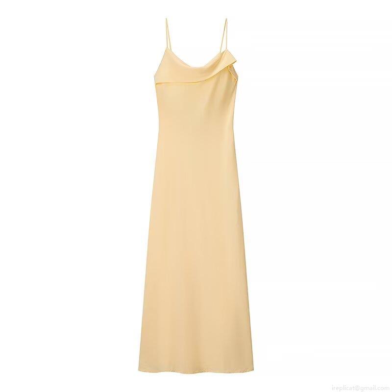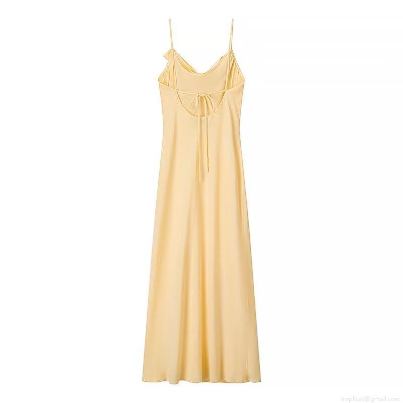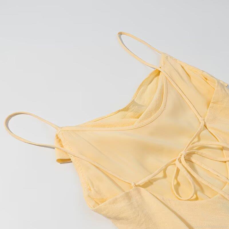 • Women's Elegant Light Yellow Satin Camisole Maxi Dress Cowl Neck Backless Tie Up Spaghetti Strap Sexy Solid Color Sleeveless Party Evening Long Dress