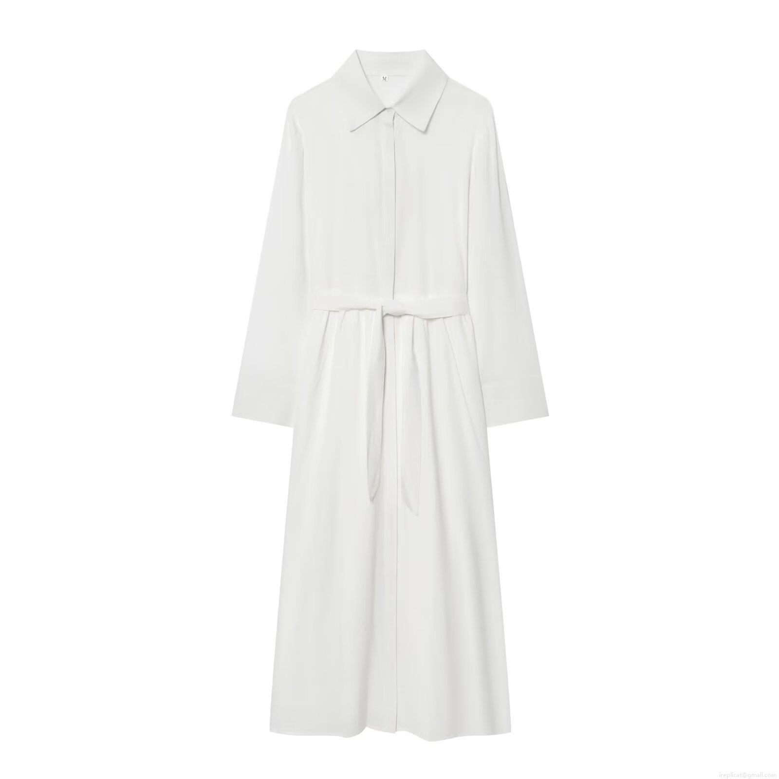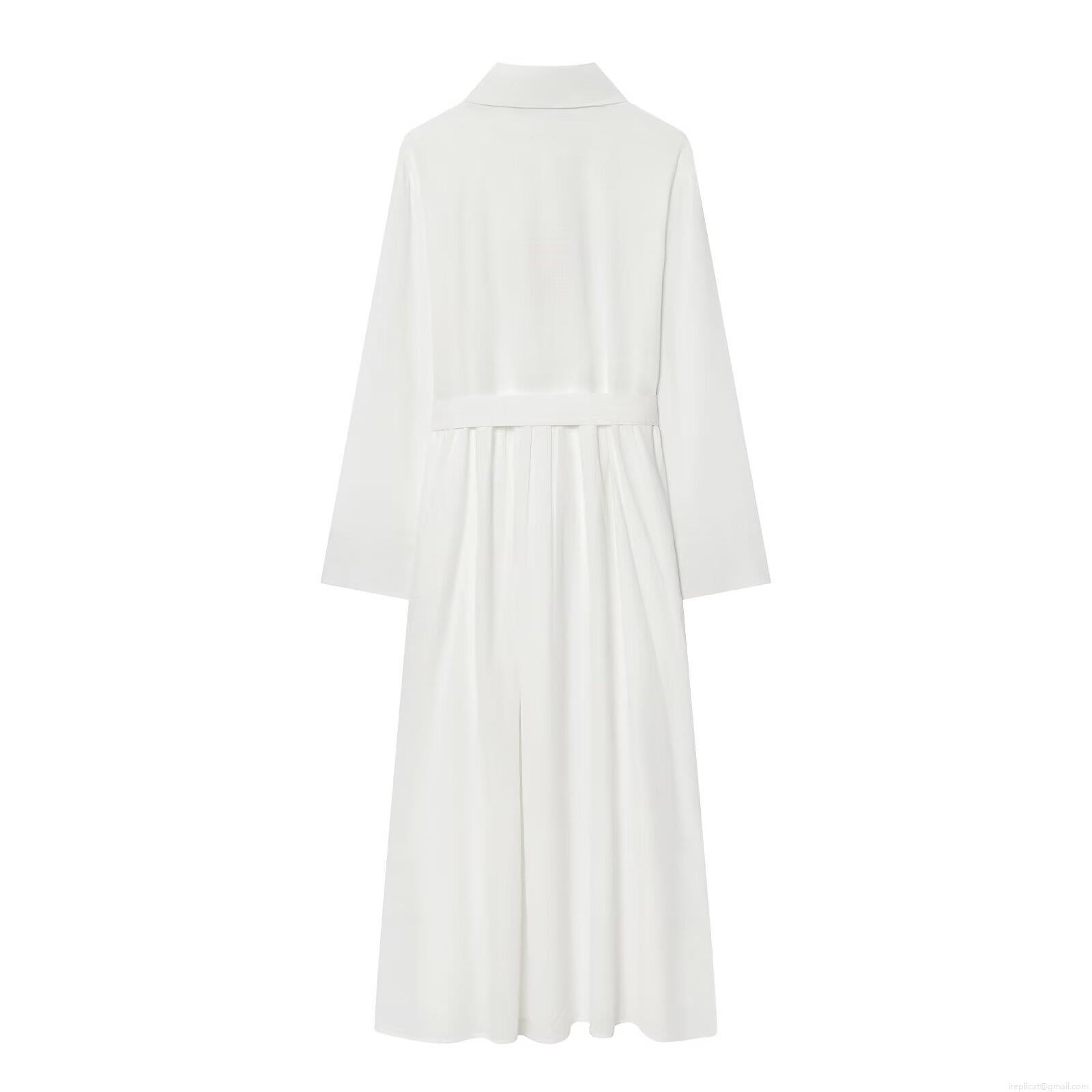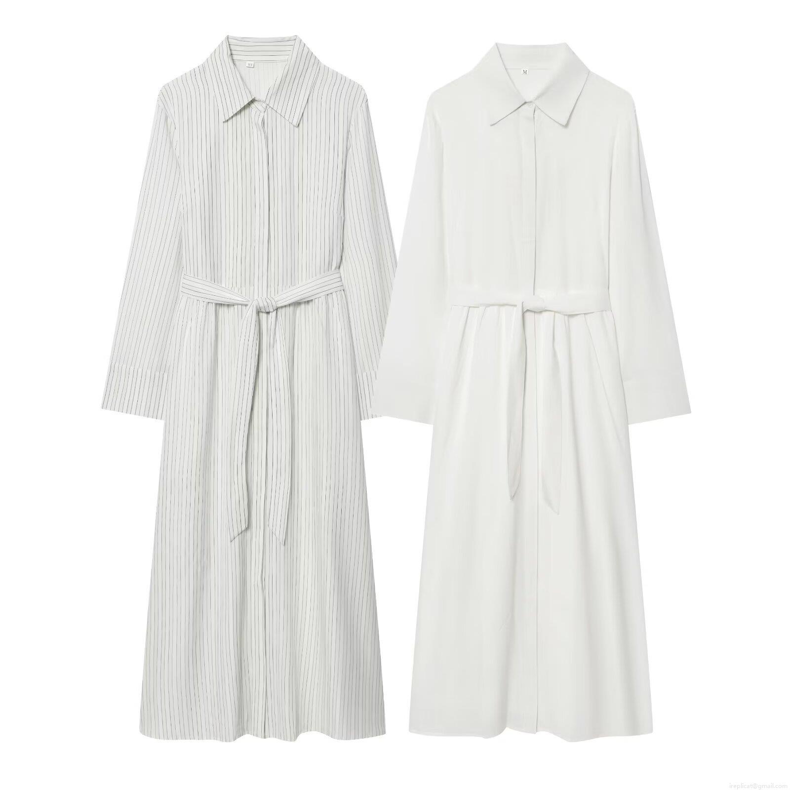 • Women's Elegant Long Sleeve Maxi Shirt Dress with Waist Belt Button Down Solid White and Vertical Striped Pattern Casual Office Work Dresses