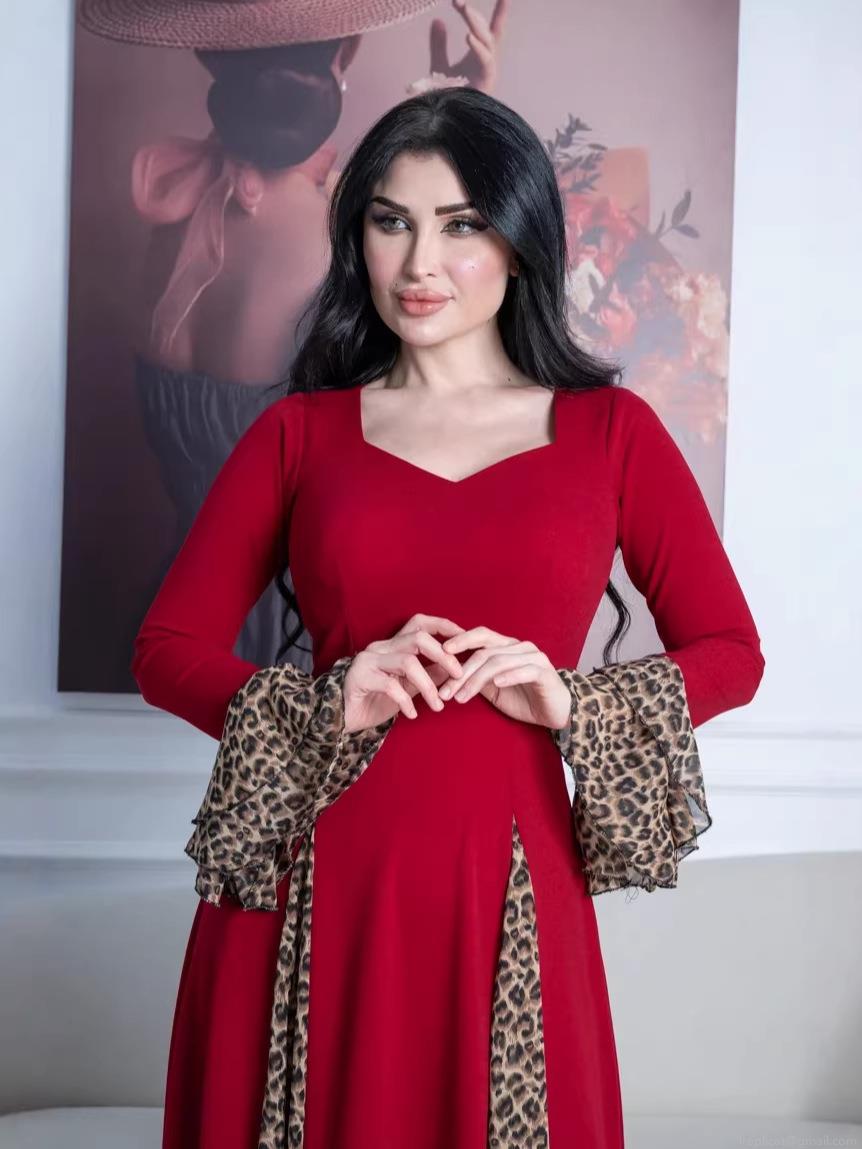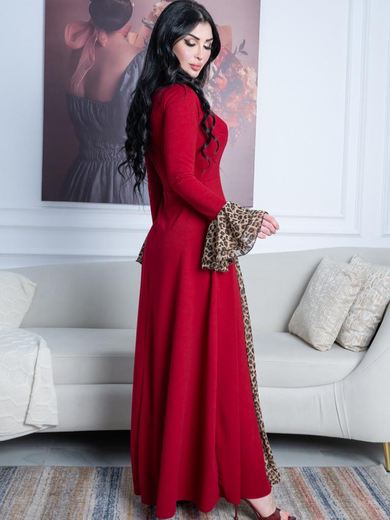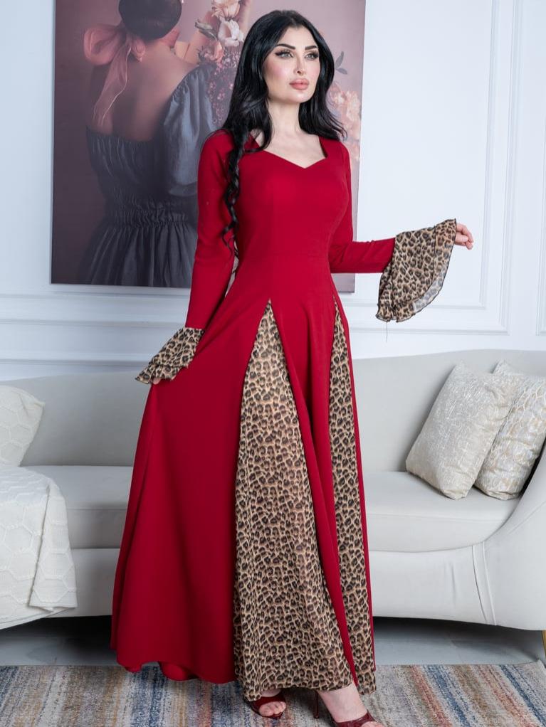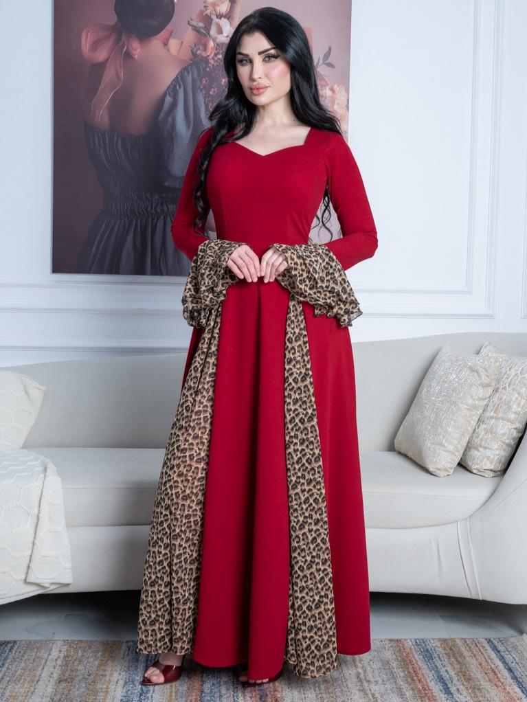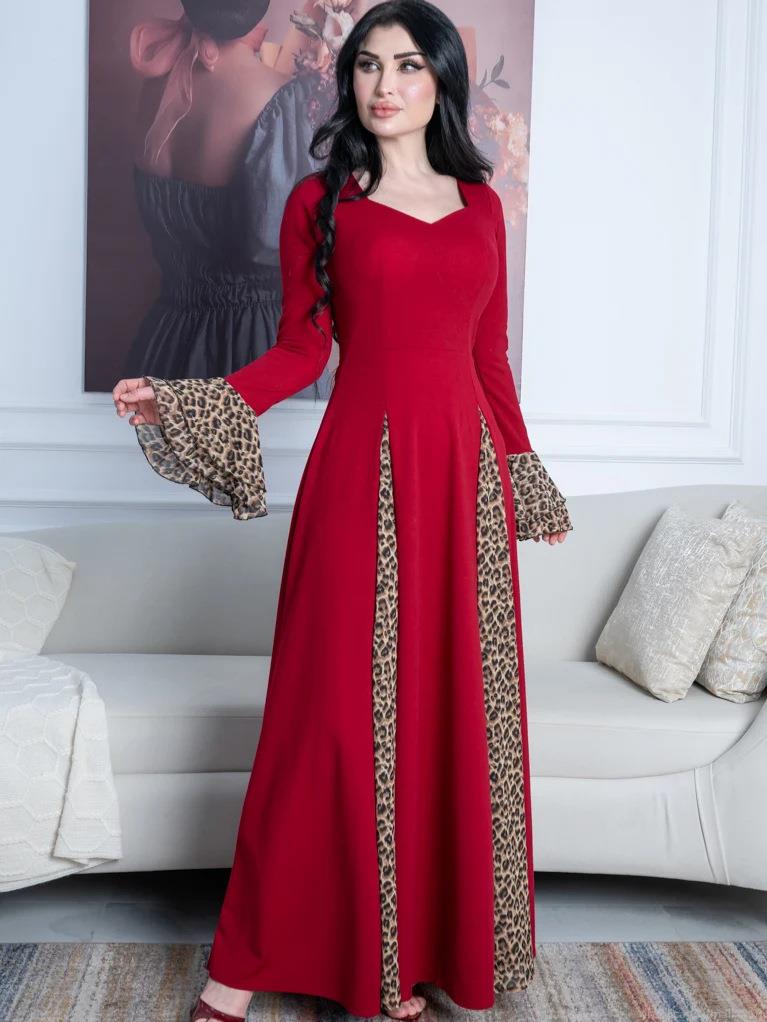 • Women's Elegant Maxi Dress Long Sleeve Sweetheart Neck Leopard Print Patchwork Polyester A-Line Slim Fit Long Skirt For Party Daily Wear