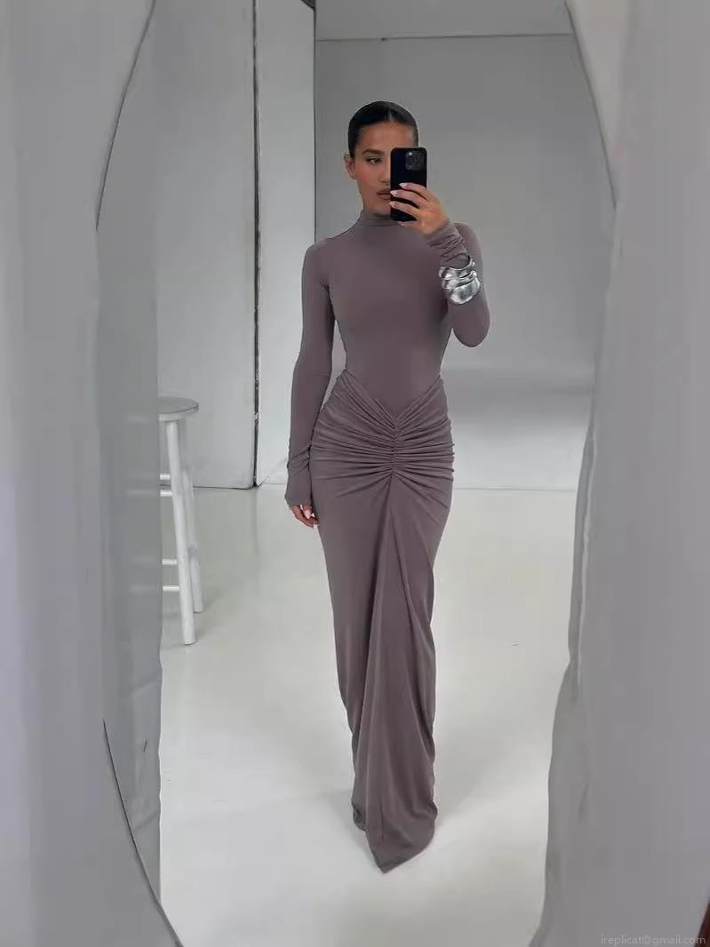 Women's Elegant Mock Neck Long Sleeve Ruched Bodycon Maxi Dress Polyester Elastane Milk Silk Slim Fit Evening Party Streetwear Dress