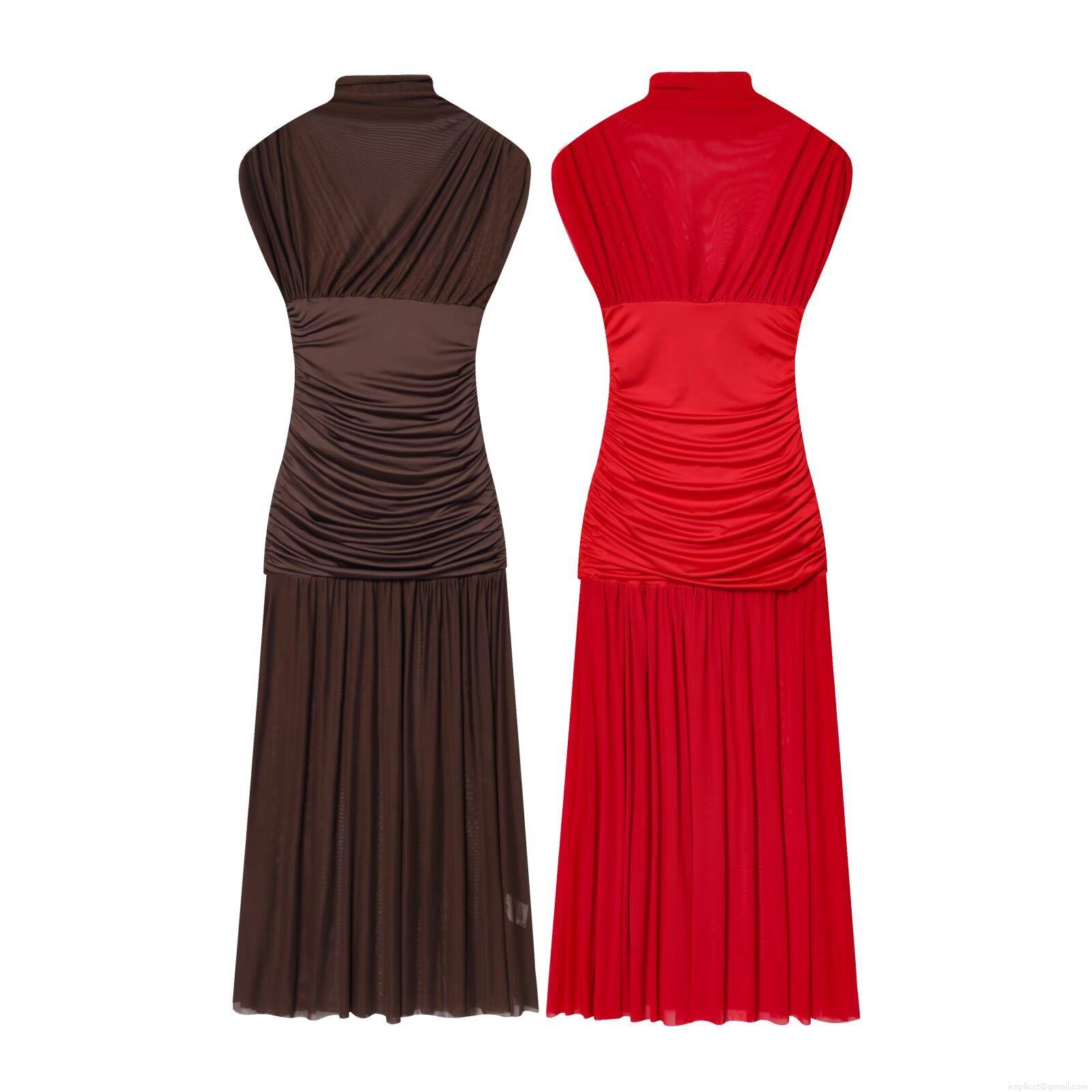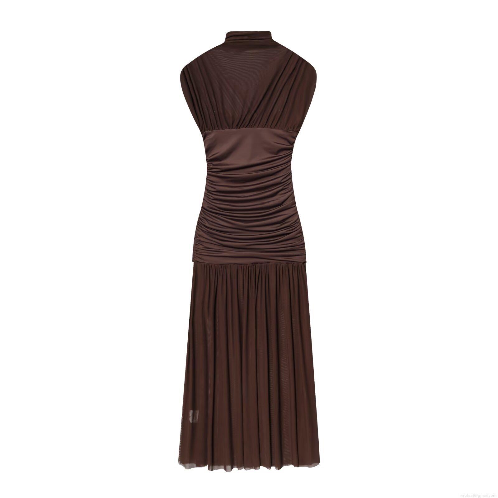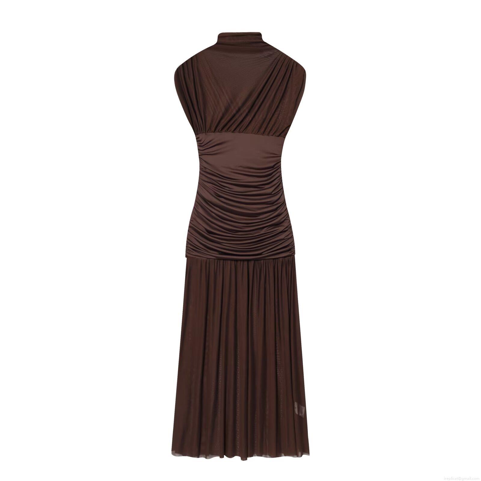 • Women's Elegant Mock Neck Sleeveless Mesh Patchwork Dress Sexy Ruched Pleated Maxi Dress For Party Club Streetwear Polyester Bodycon Long Dress