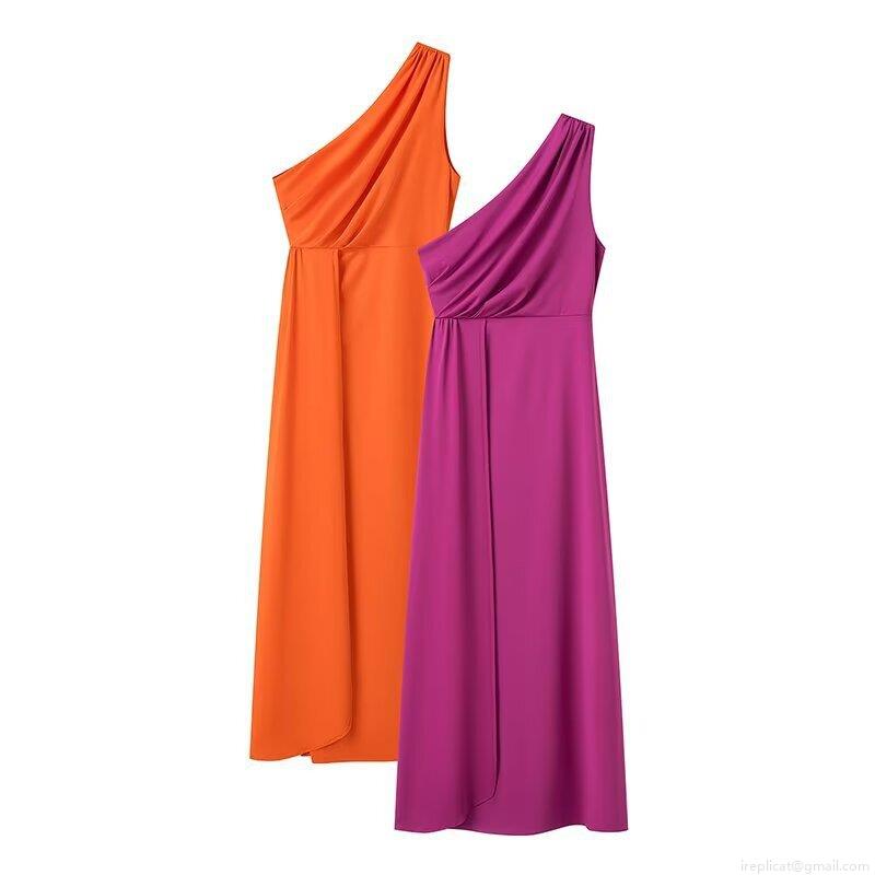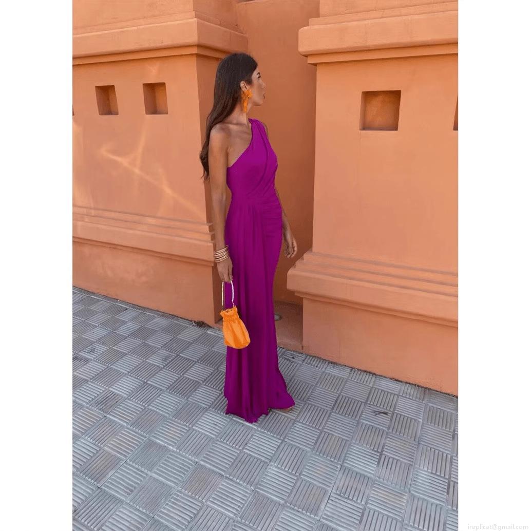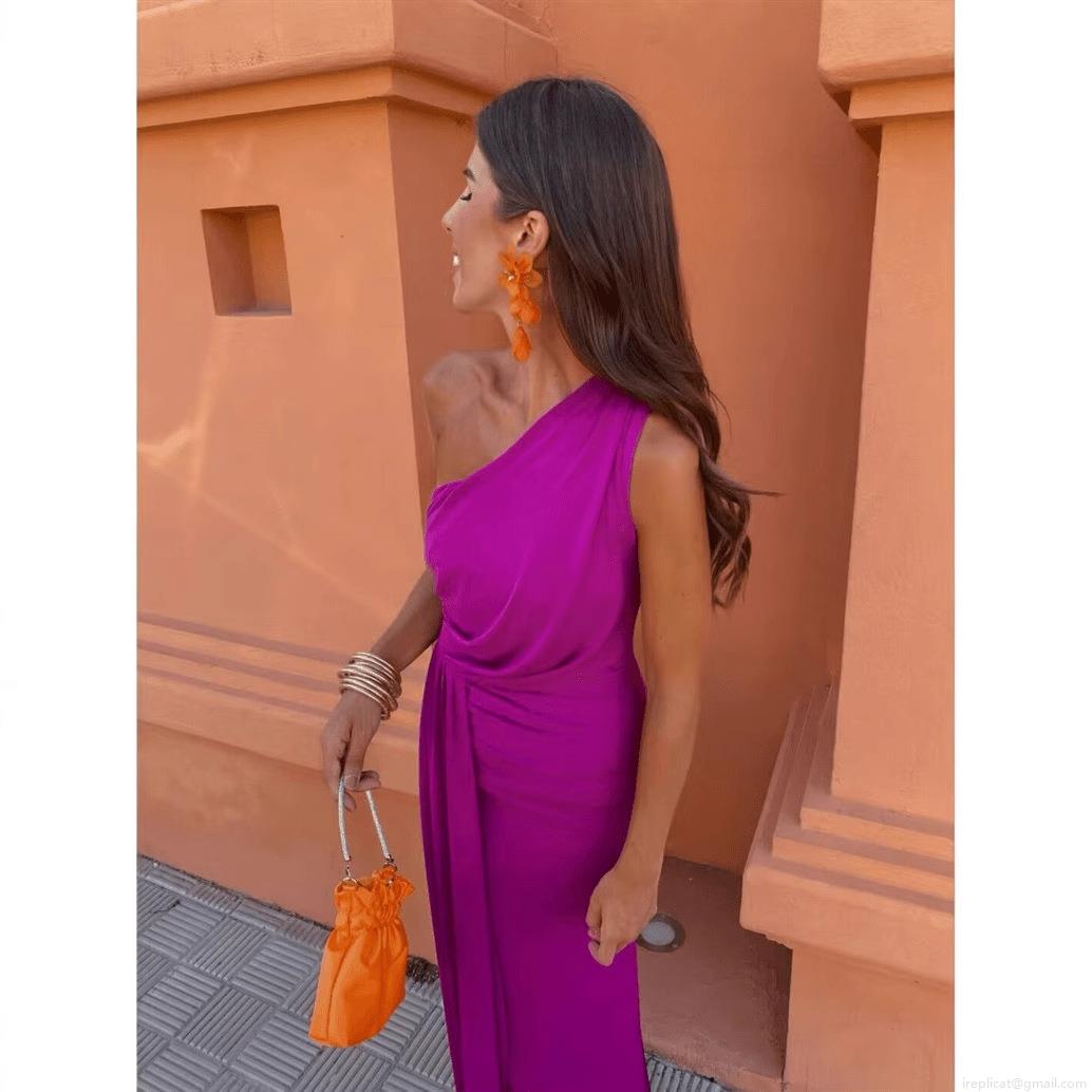• Women's Elegant One Shoulder Maxi Dress Ruched Waist High Slit Polyester Sleeveless Evening Party Gown Vacation Wedding Guest Dresses