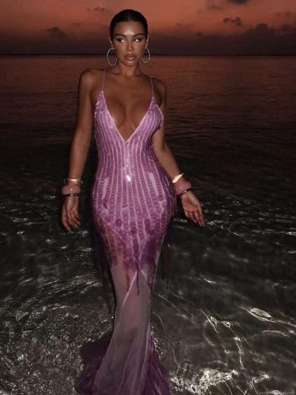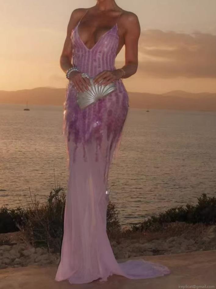 Solid Color, Sequin, Backless, Sequin Decoration, Deep V, Sheer Fabric