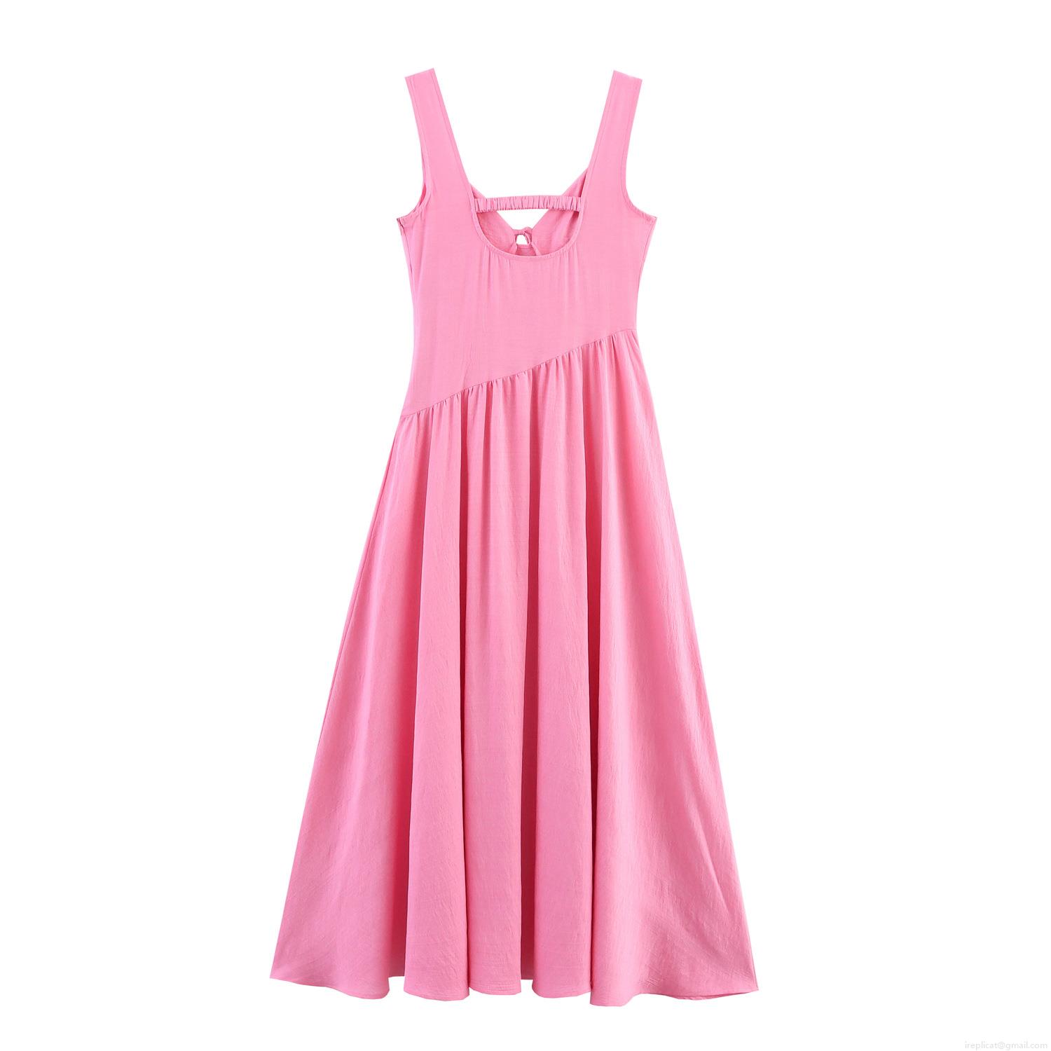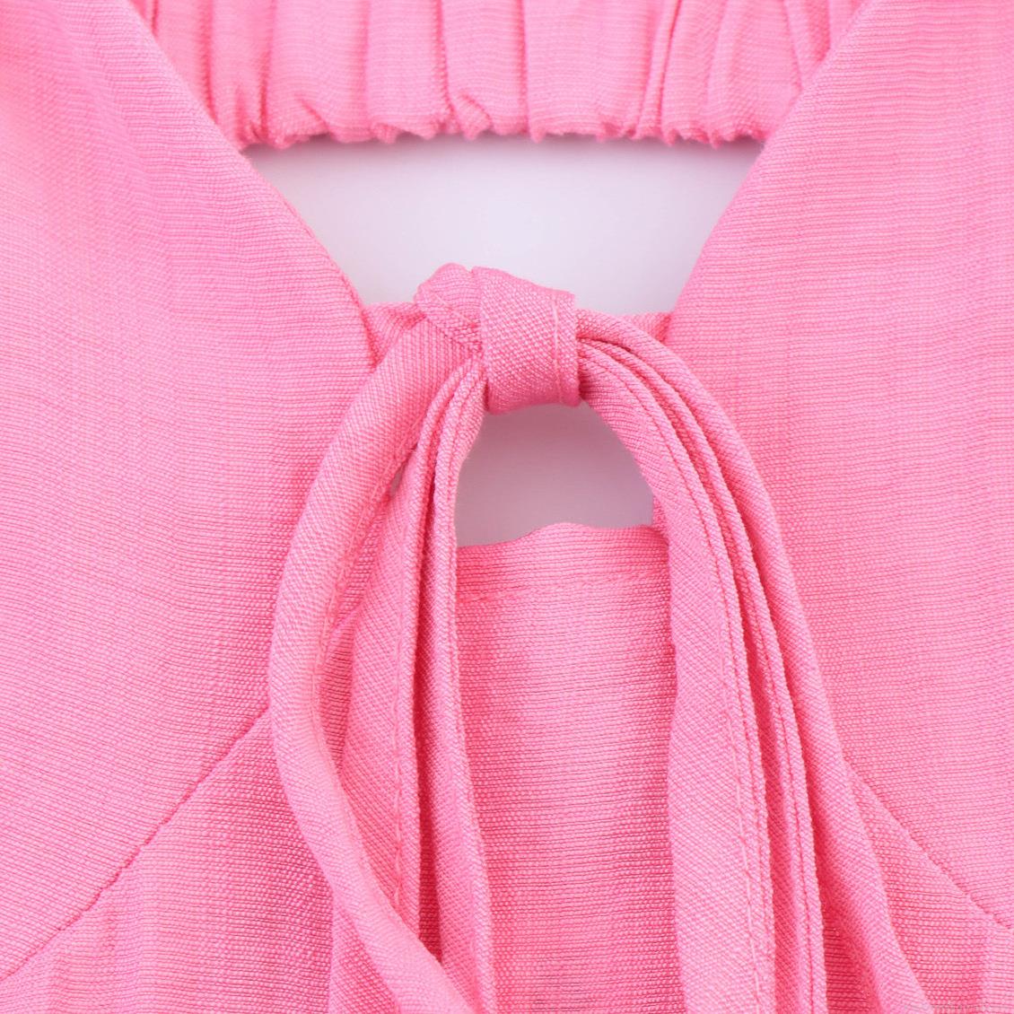• Women's Elegant Pink V Neck Sleeveless Maxi Dress Tie Bow Back Cut Out Irregular Hem High Waist Polyester Long Dress For Summer Vacation Beach Party