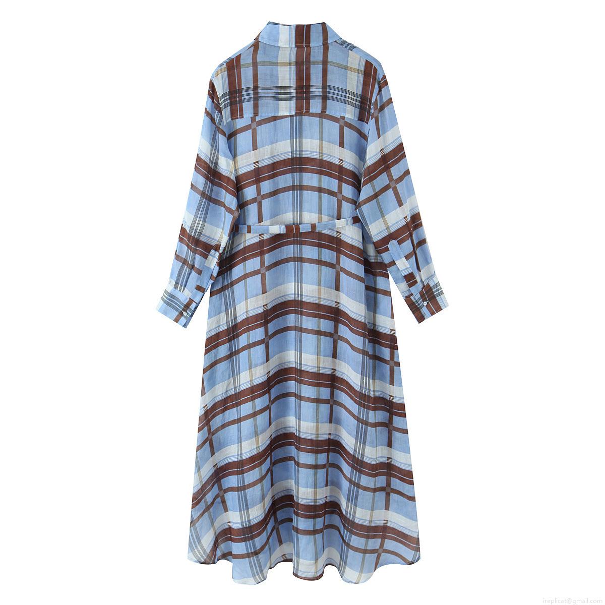 • Women's Elegant Plaid Shirt Dress Long Sleeve Button Down Belted Maxi Dress Casual Retro Gingham Dress with Irregular Hem and Pockets Polyester Linen Blend Gown