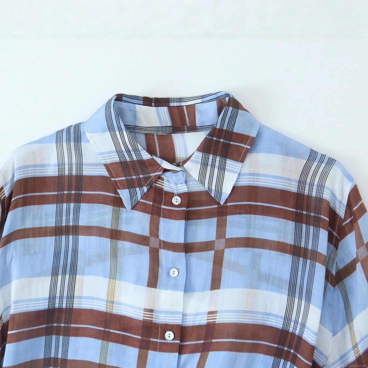 Checkered Pattern, Lace, Button Decoration, Irregular Hem
