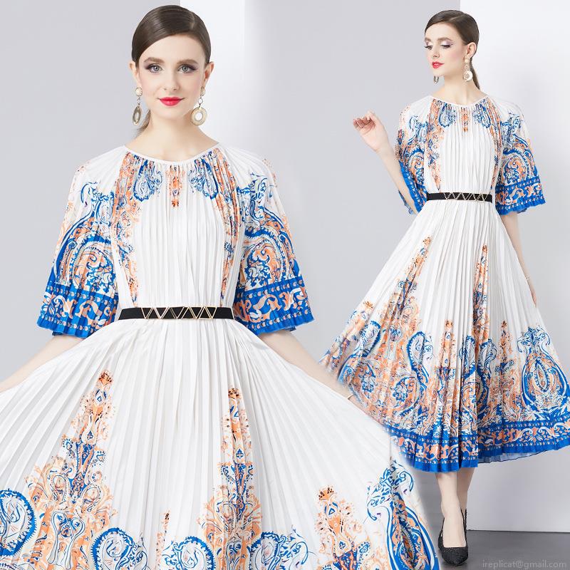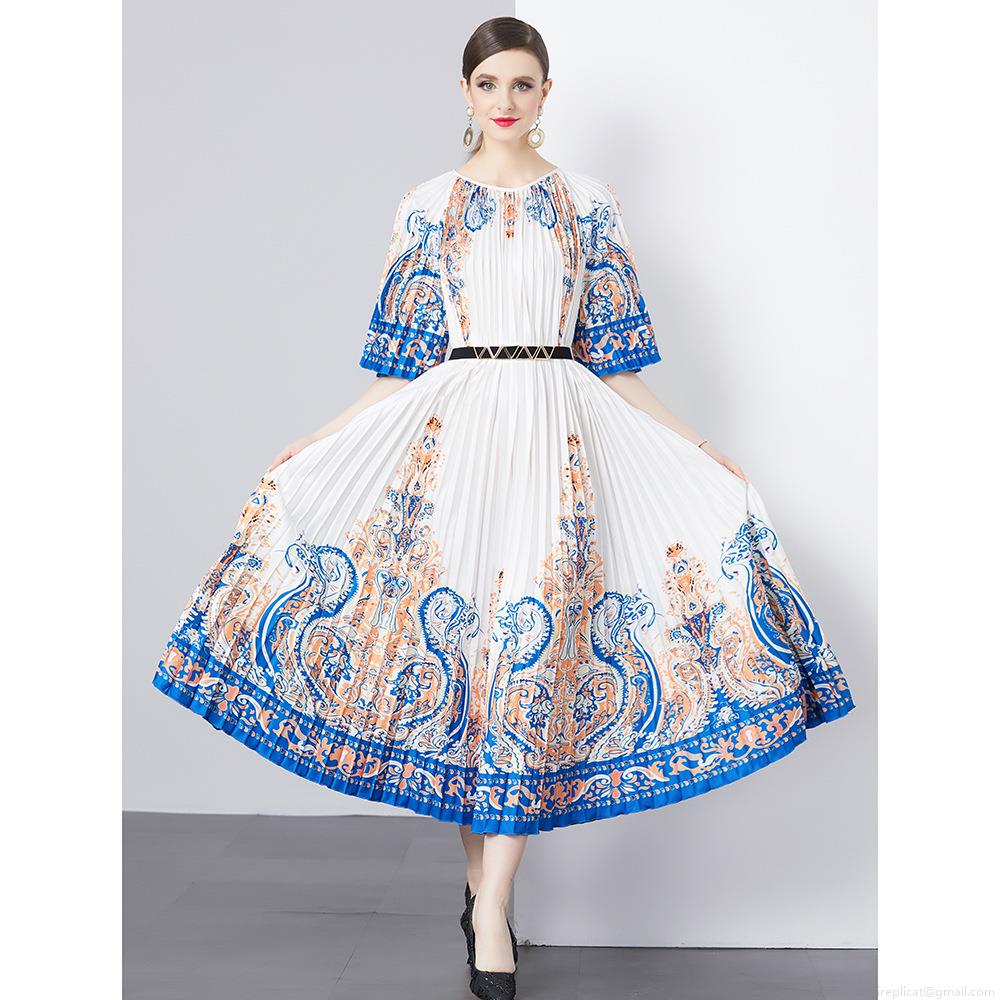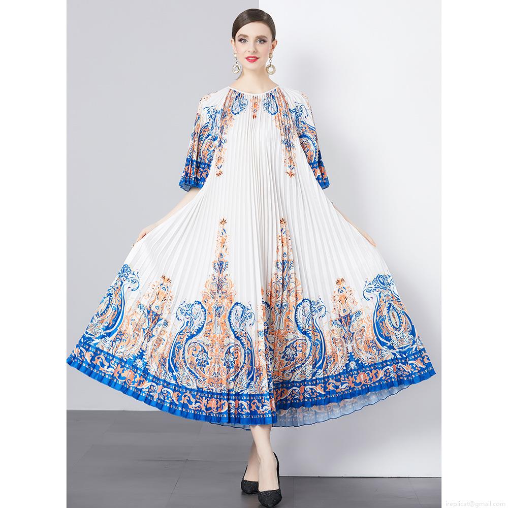 • Women's Elegant Pleated Maxi Dress 5.5m Large Hem Accordion Pleats Retro Paisley Print Bohemian Long Dress With Belt For Party Vacation