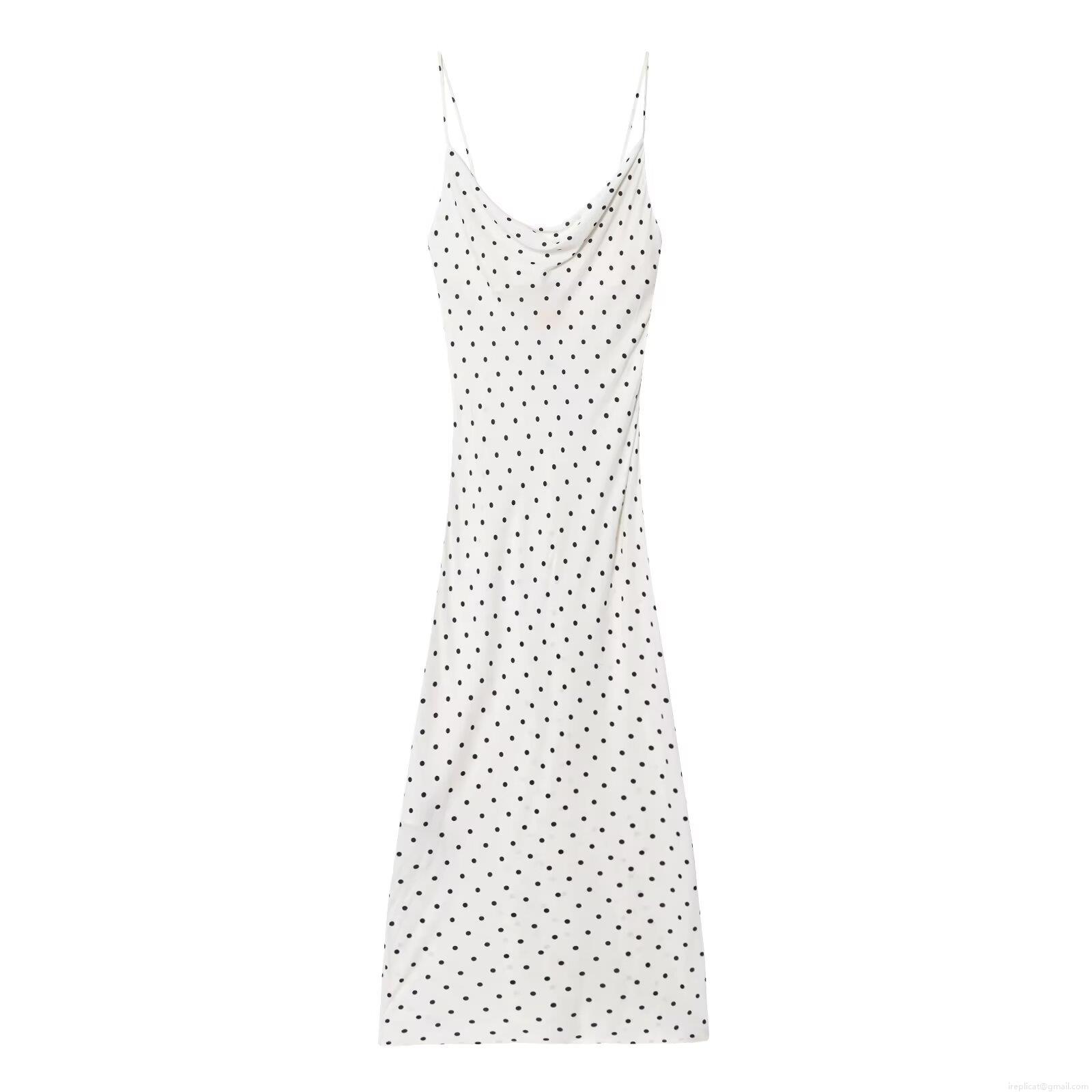 • Women's Elegant Polka Dot Maxi Dress Cowl Neck Spaghetti Strap Sleeveless Polyester Slip Long Dress For Summer Party Wedding Guest Lady