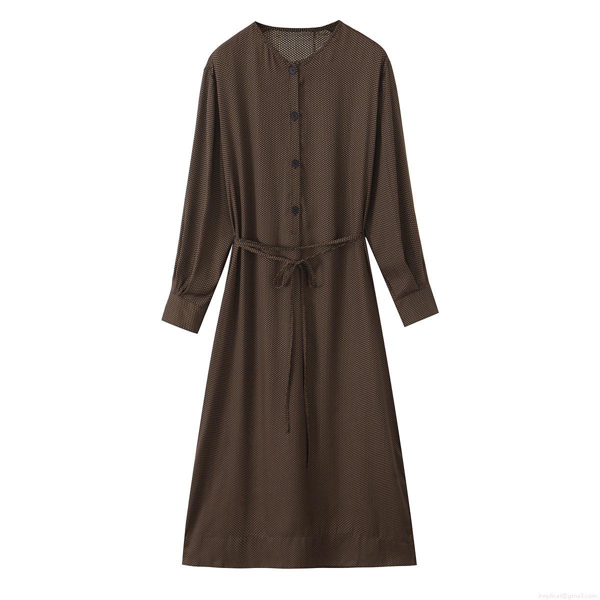 • Women's Elegant Polka Dot Maxi Dress Polyester Long Sleeve Round Neck Button Down Dress With Belt For Party Daily Casual Celebrity Style