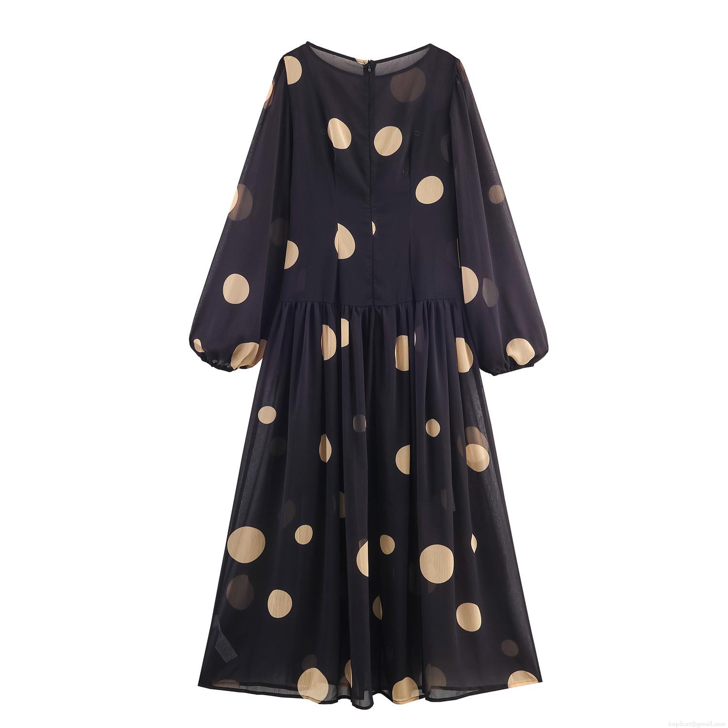 • Women's Elegant Polka Dot Print Chiffon Maxi Dress Off-The-Shoulder Long Sleeve High Waist A-Line Flowy Long Dress For Daily Commuting Office Party Casual Wear