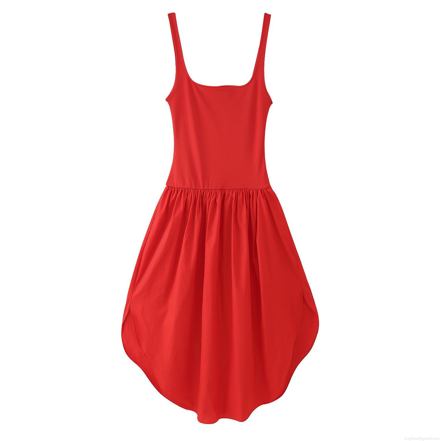 Solid Color, Splice, Pleats, Big Swing, Irregular Hem