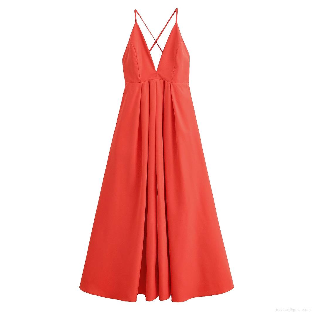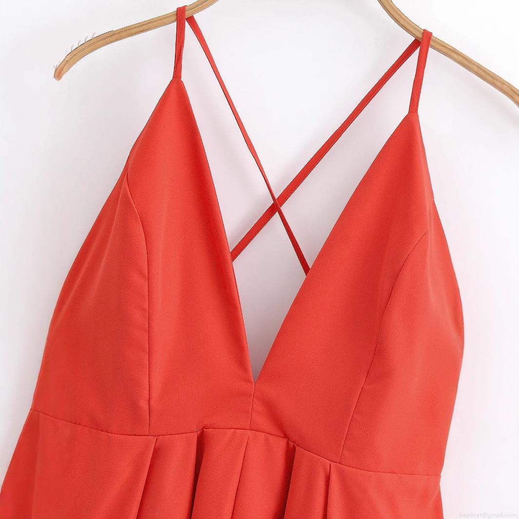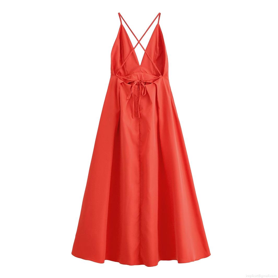 Solid Color, Pleats, Backless, Cross Straps, Bow Tie, Deep V-neck, A-line Skirt