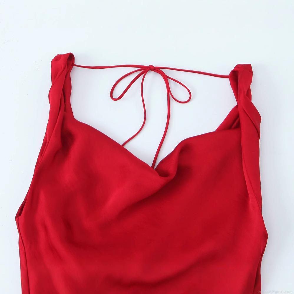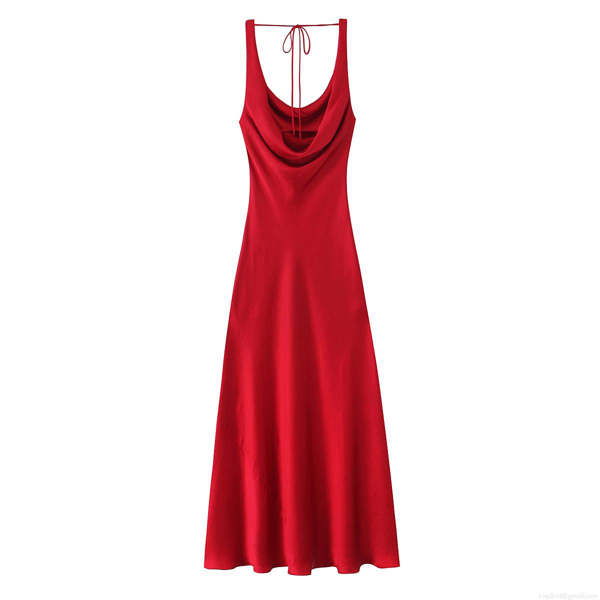 • Women's Elegant Red Satin Maxi Dress Cowl Neck Spaghetti Strap Tie Back Sexy Long Slip Dress For Evening Party Wedding Guest Formal Gala Socialite