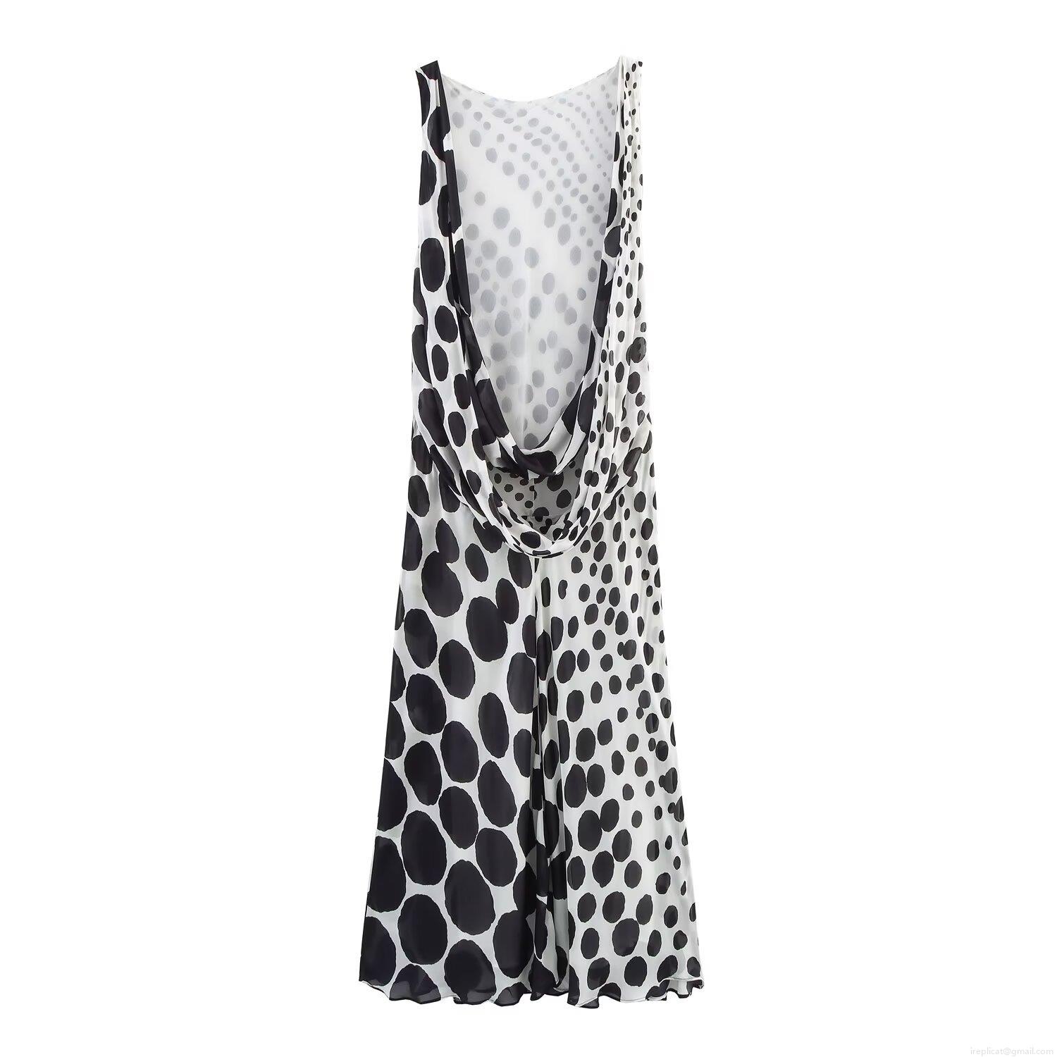 • Women's Elegant Retro Polka Dot Sleeveless Maxi Dress Lightweight Chiffon Round Neck Long Flowy Sundress For Summer Party Vacation Ladies Fashion
