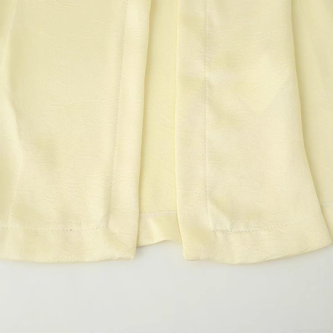 Solid Color, Side Fork, Pleated Decoration, Silk Satin Texture