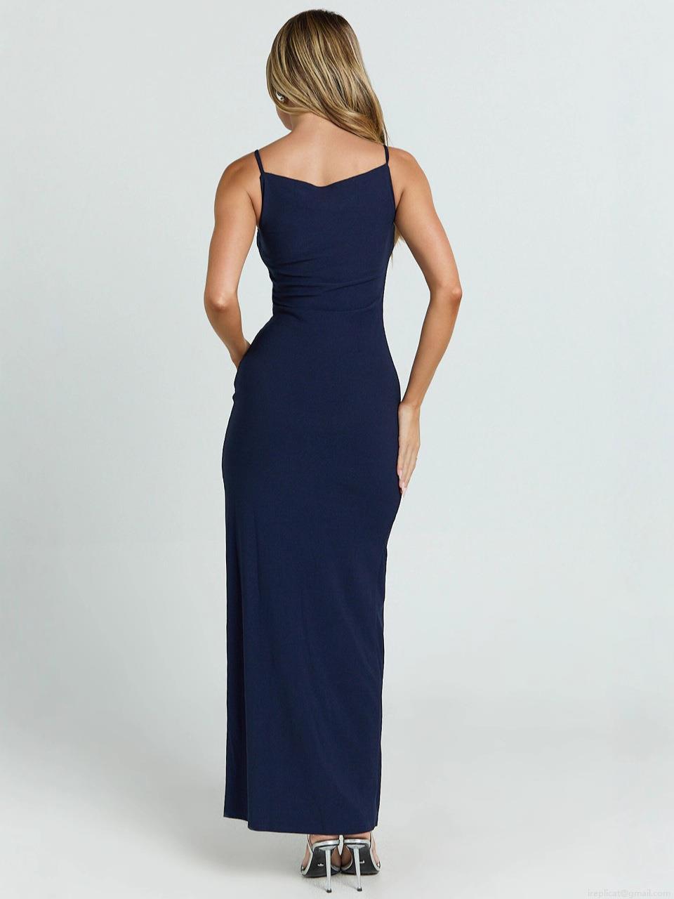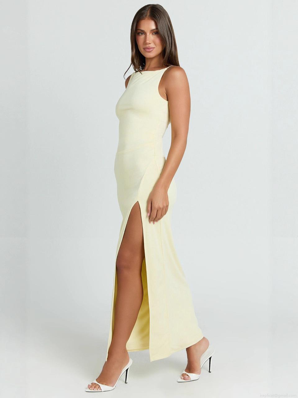 • Women's Elegant Ruched High Slit Maxi Dress Sexy Off Shoulder Polyester Elastane Milk Silk Sleeveless Long Evening Party Gown for Ladies