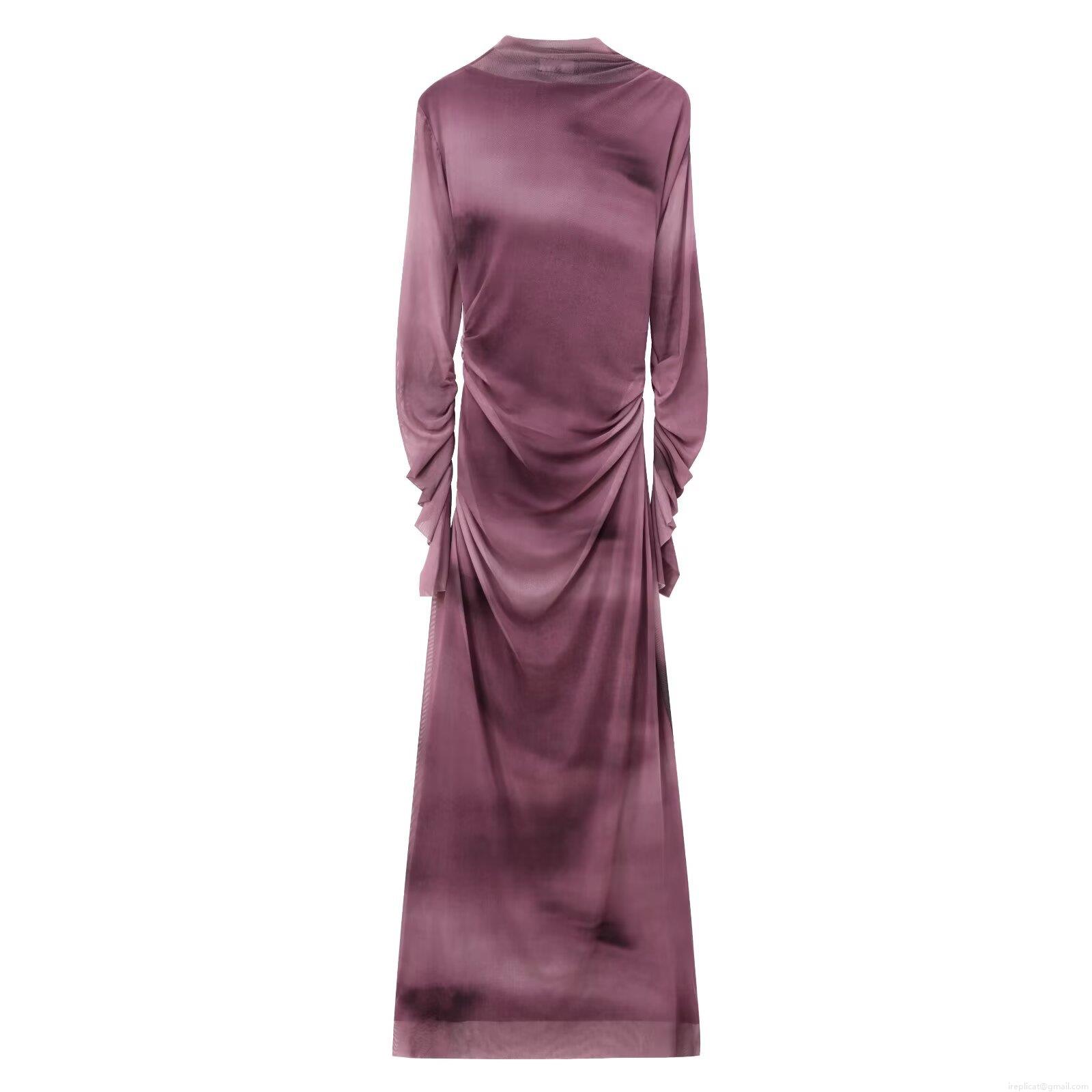 • Women's Elegant Ruched Mesh Maxi Dress Long Sleeve Turtleneck Bodycon Party Dress With Gradient Polka Dot And Snake Skin Print Patterns