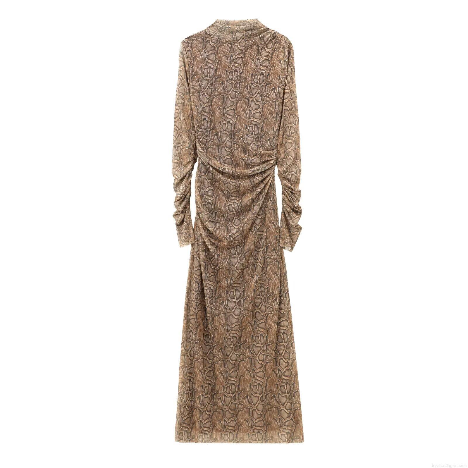 Women's Elegant Ruched Mesh Maxi Dress Long Sleeve Turtleneck Bodycon Party Dress With Gradient Polka Dot And Snake Skin Print Patterns