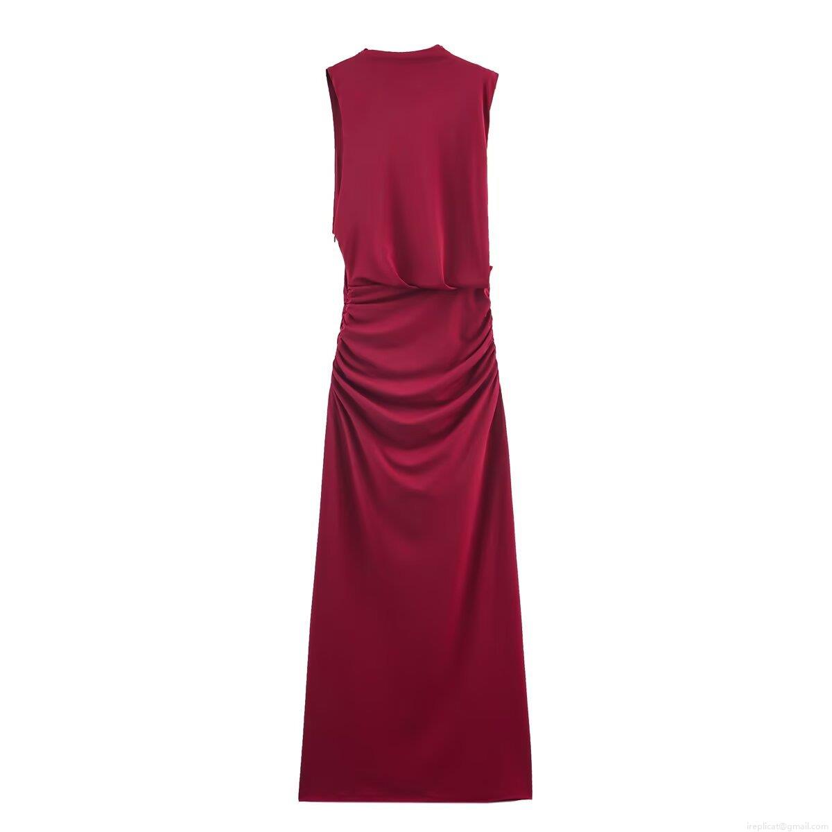 • Women's Elegant Ruched Sleeveless Maxi Dress Semi-High Neck Bodycon Knit Long Dress For Party Banquet Solid Color Socialite Style