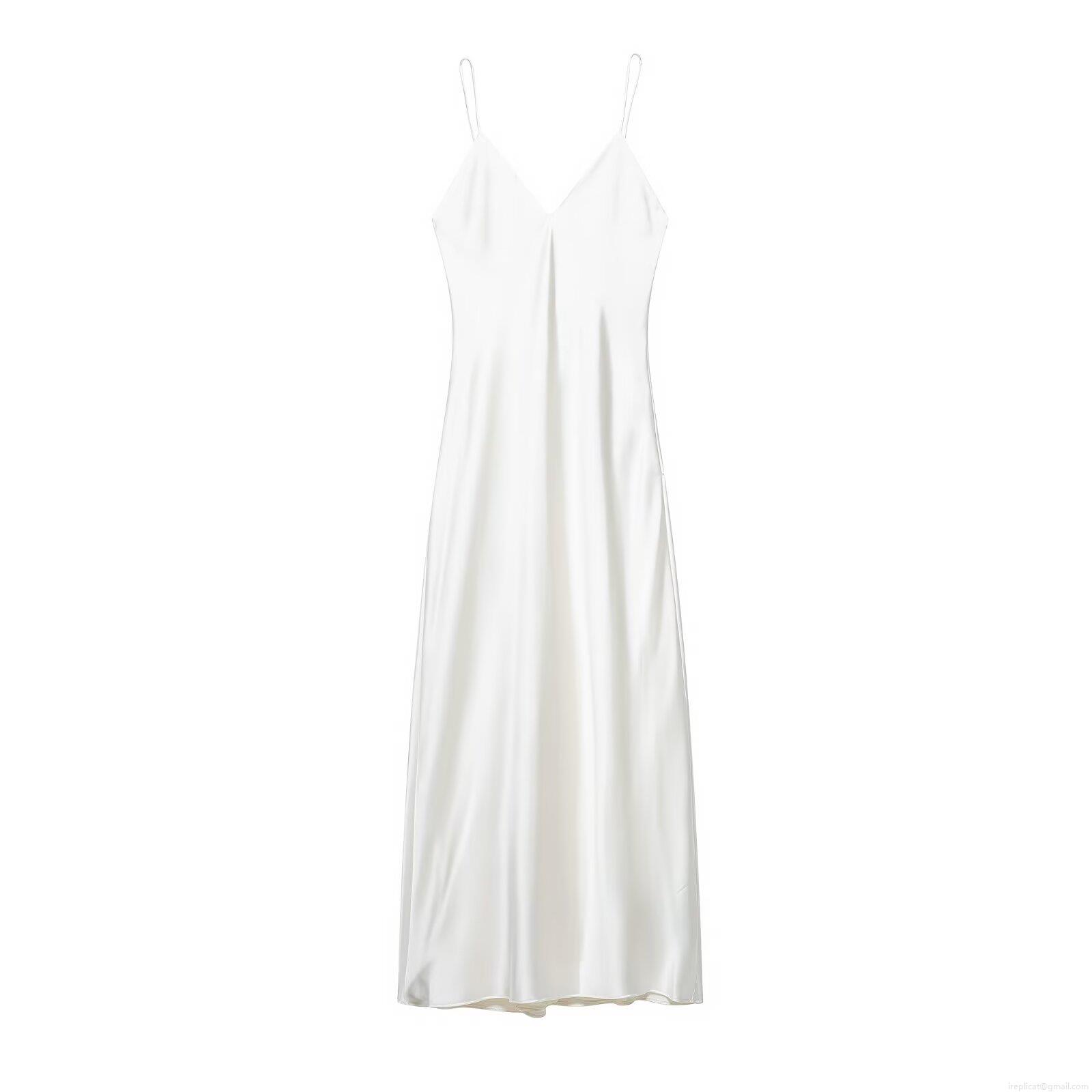 • Women's Elegant Satin Backless Cami Dress V-neck Minimalist White Maxi Slip Dress For Summer Party Evening Wear Sexy Clubwear Sleeveless Gown