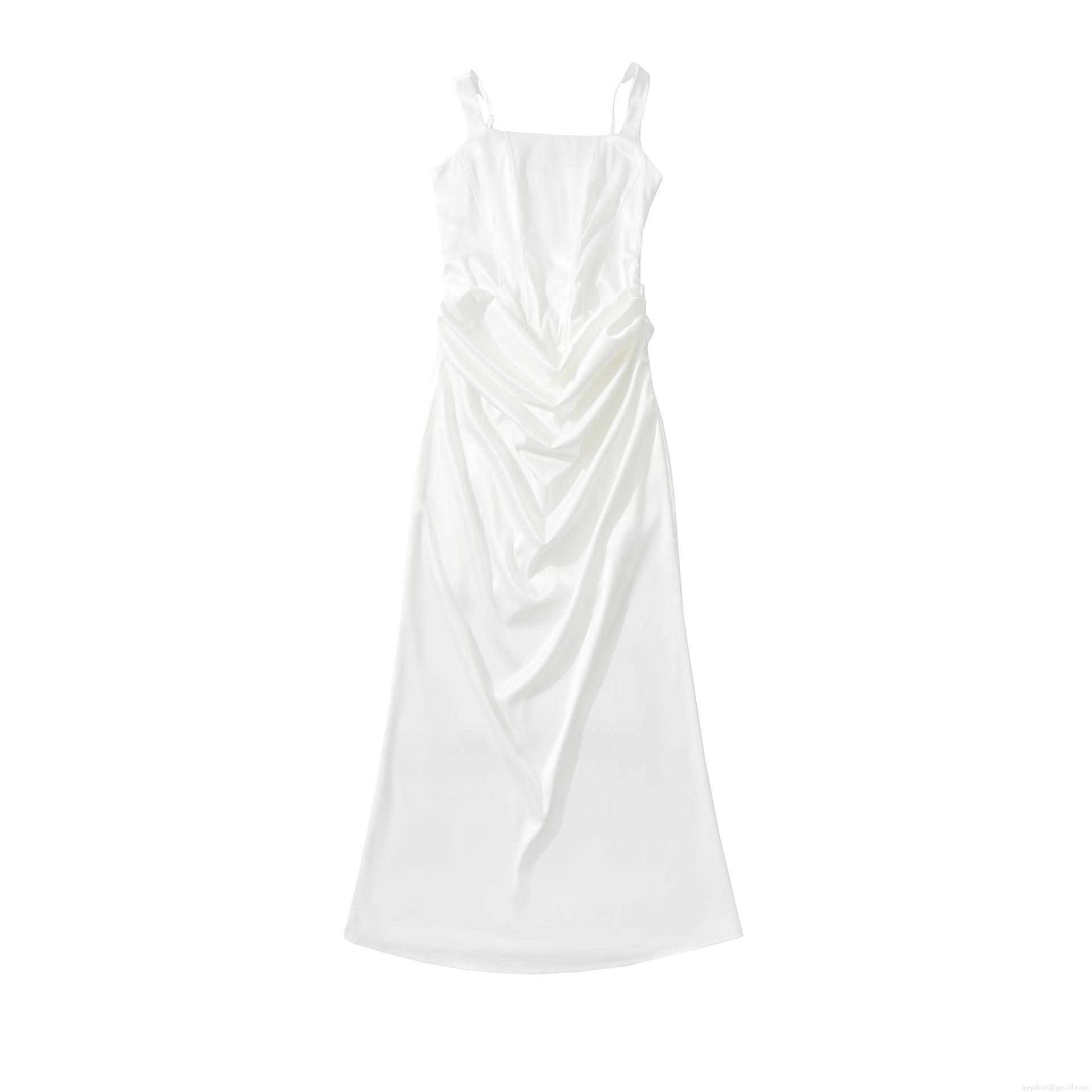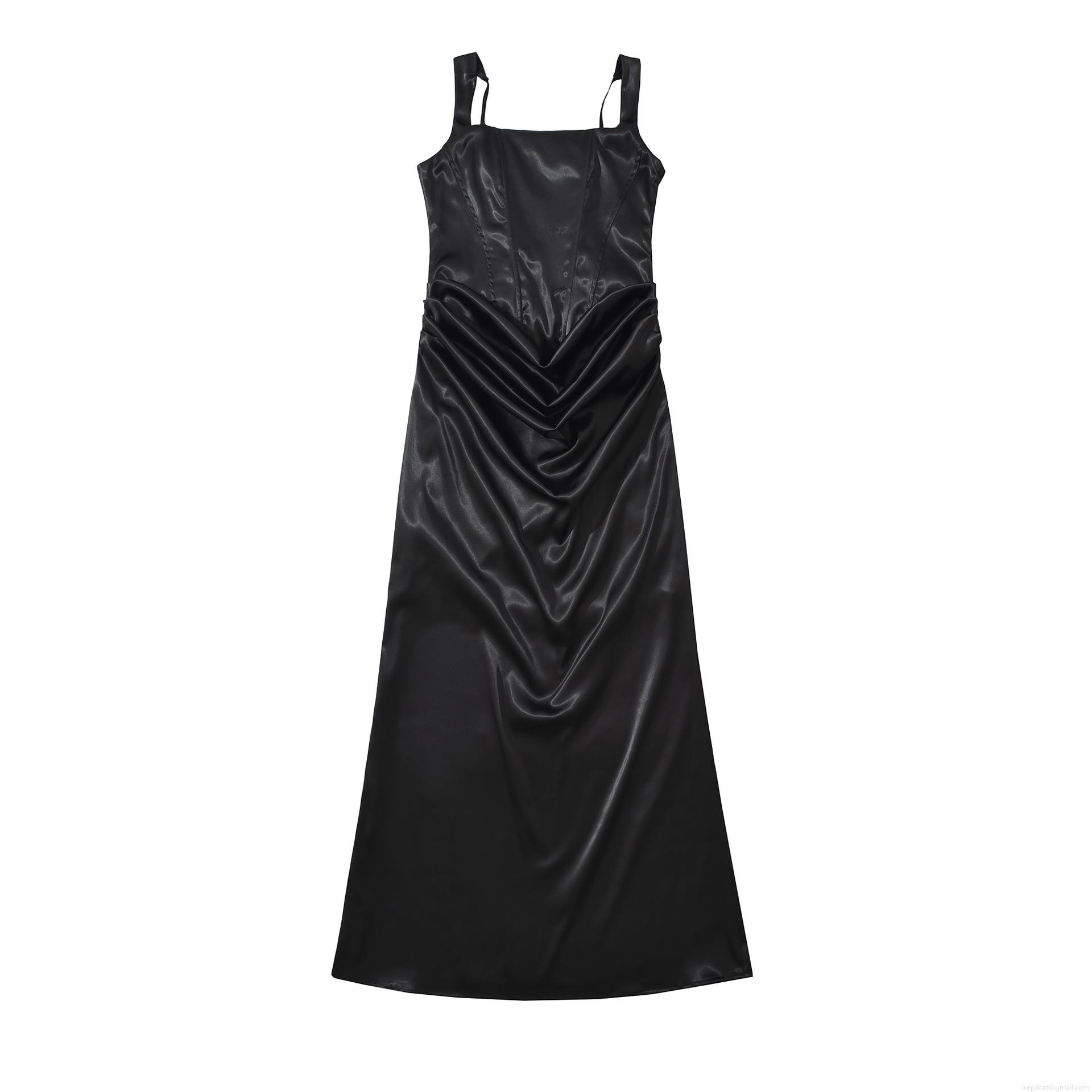 • Women's Elegant Satin Maxi Dress Slim Fit Pleated Camisole Long Dress With Back Lace Up For Party Wedding Streetwear Summer Vacation