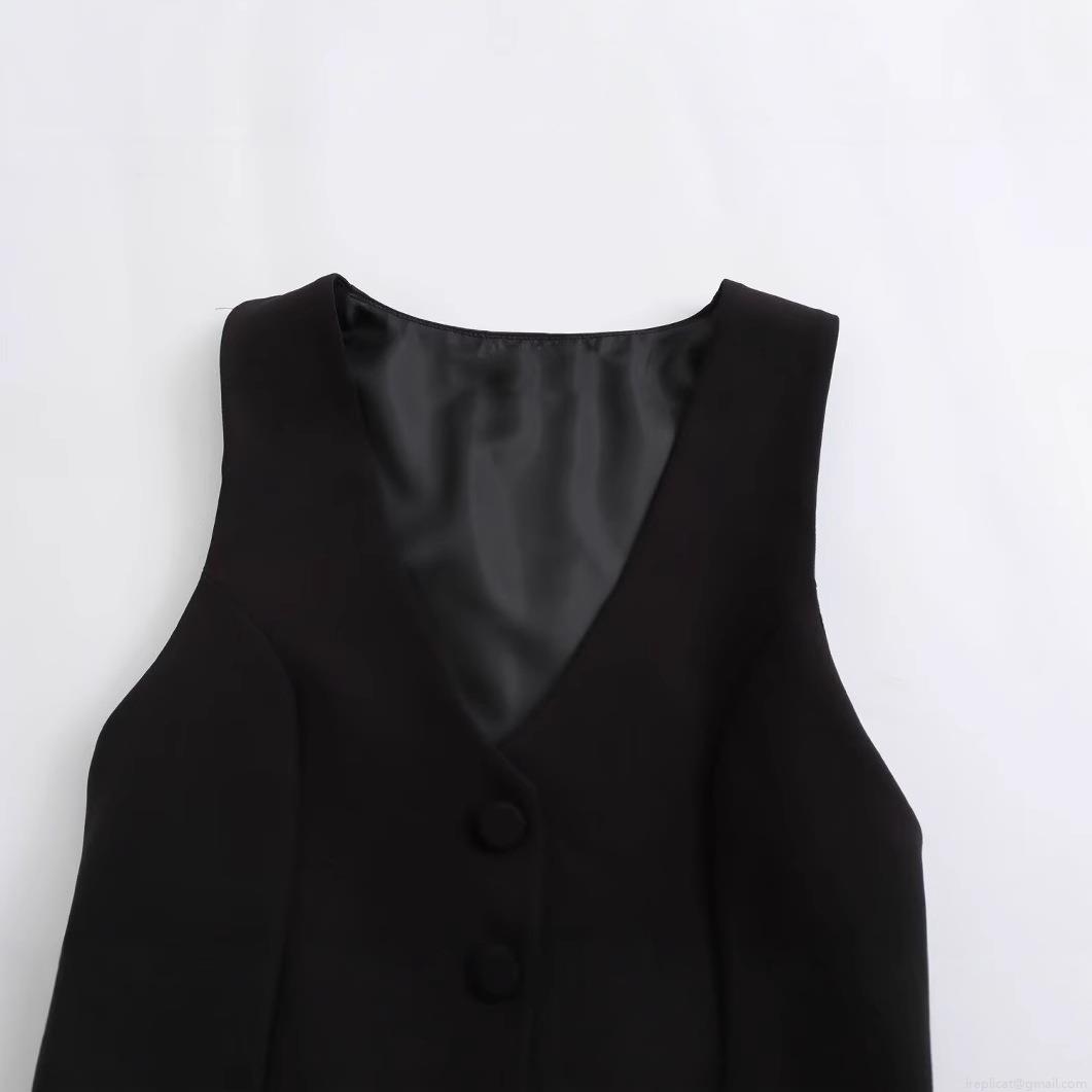 Solid Color, Splice, Buckle, Fake Two-piece, Satin Finish, Suit Collar