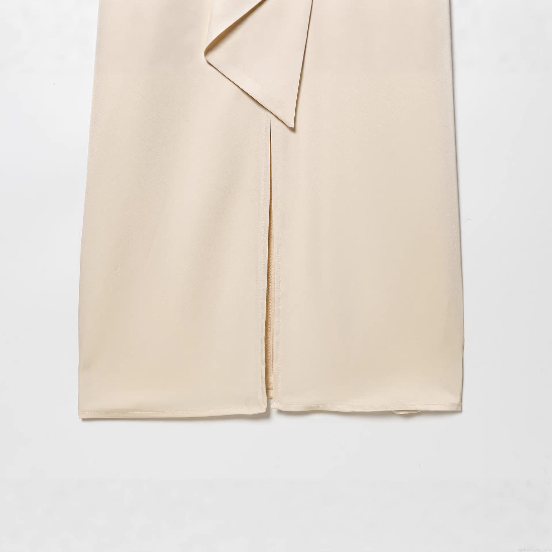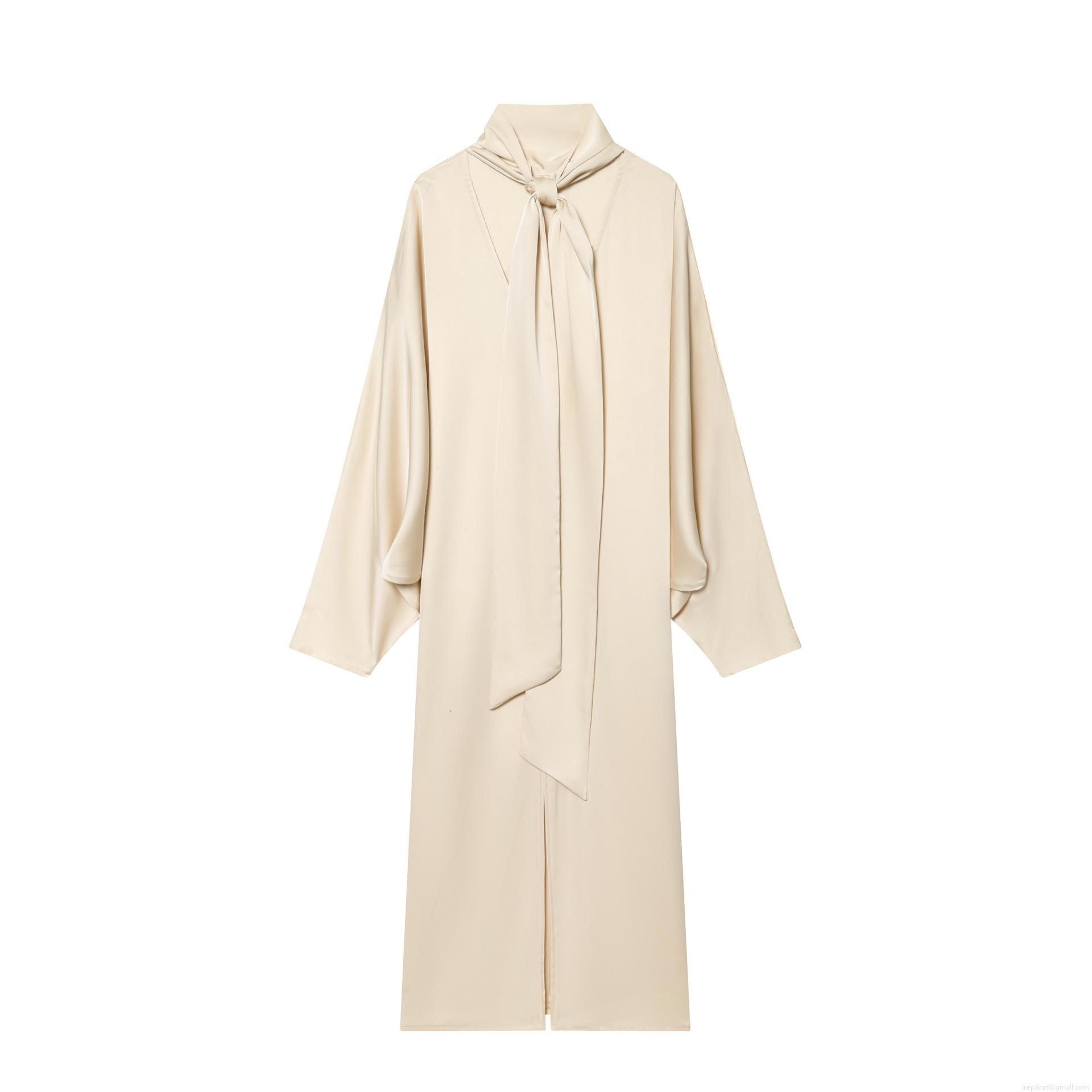• Women's Elegant Satin Silk V-Neck Maxi Dress Long Sleeve Tie-Neck Loose Fit Flowy Evening Party Gown Minimalist Apricot Long Dresses For Women