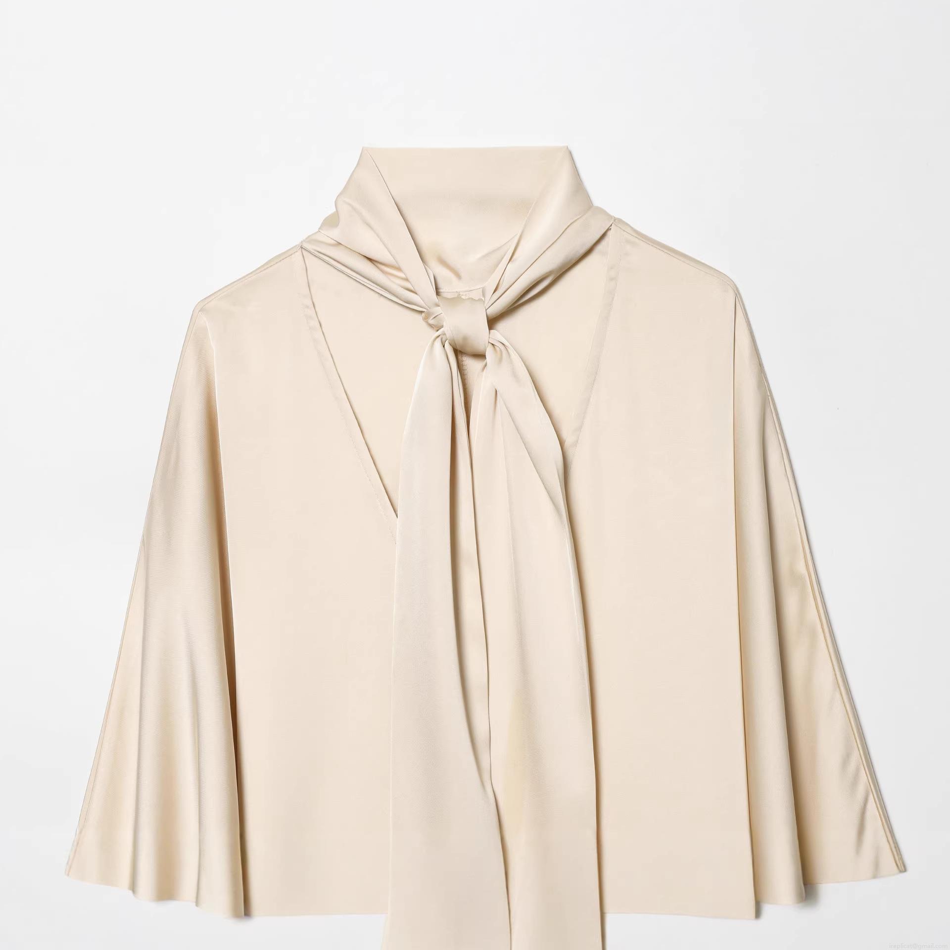 Women's Elegant Satin Silk V-Neck Maxi Dress Long Sleeve Tie-Neck Loose Fit Flowy Evening Party Gown Minimalist Apricot Long Dresses For Women