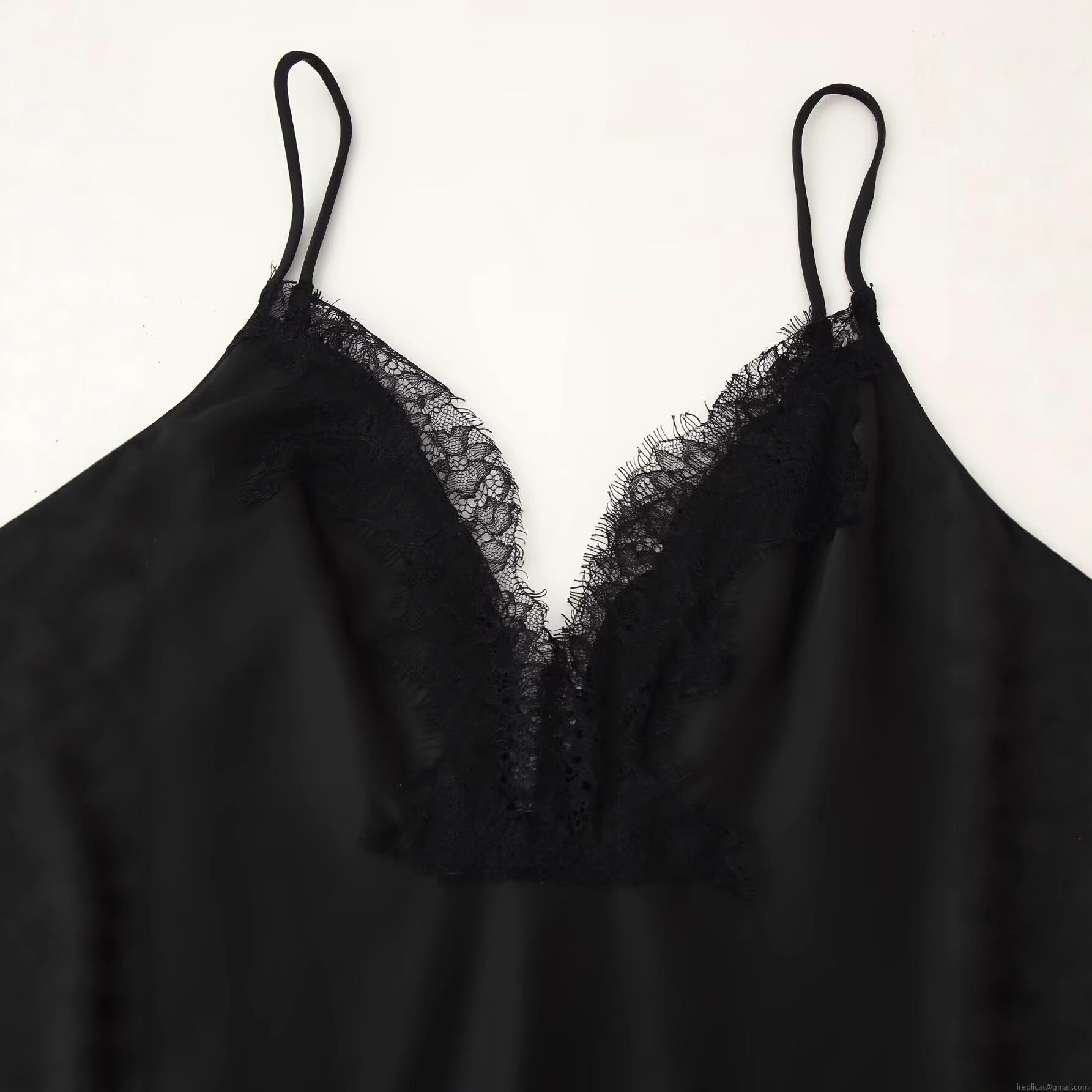 Solid Color, V-neck, Lace Patchwork, Irregular Hem, Satin Finish, Thin Shoulder Straps