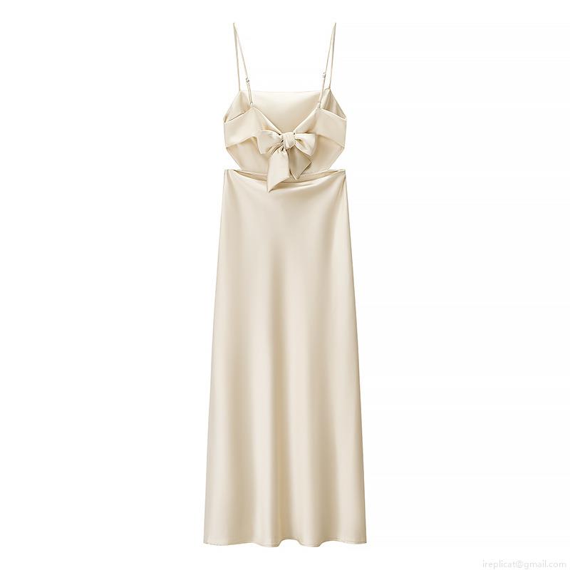 Solid Color, Bow, Satin, Thin Straps, Waist Cutout