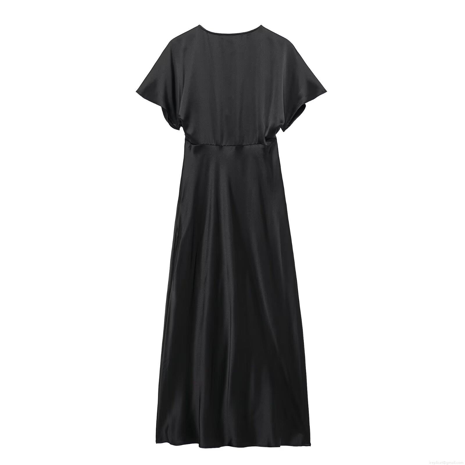 • Women's Elegant Satin V-Neck Maxi Dress High Waist Short Sleeve Solid Color Silk Like Long Dress For Evening Party Commuting Sexy Elegant Pullover A-Line Dress