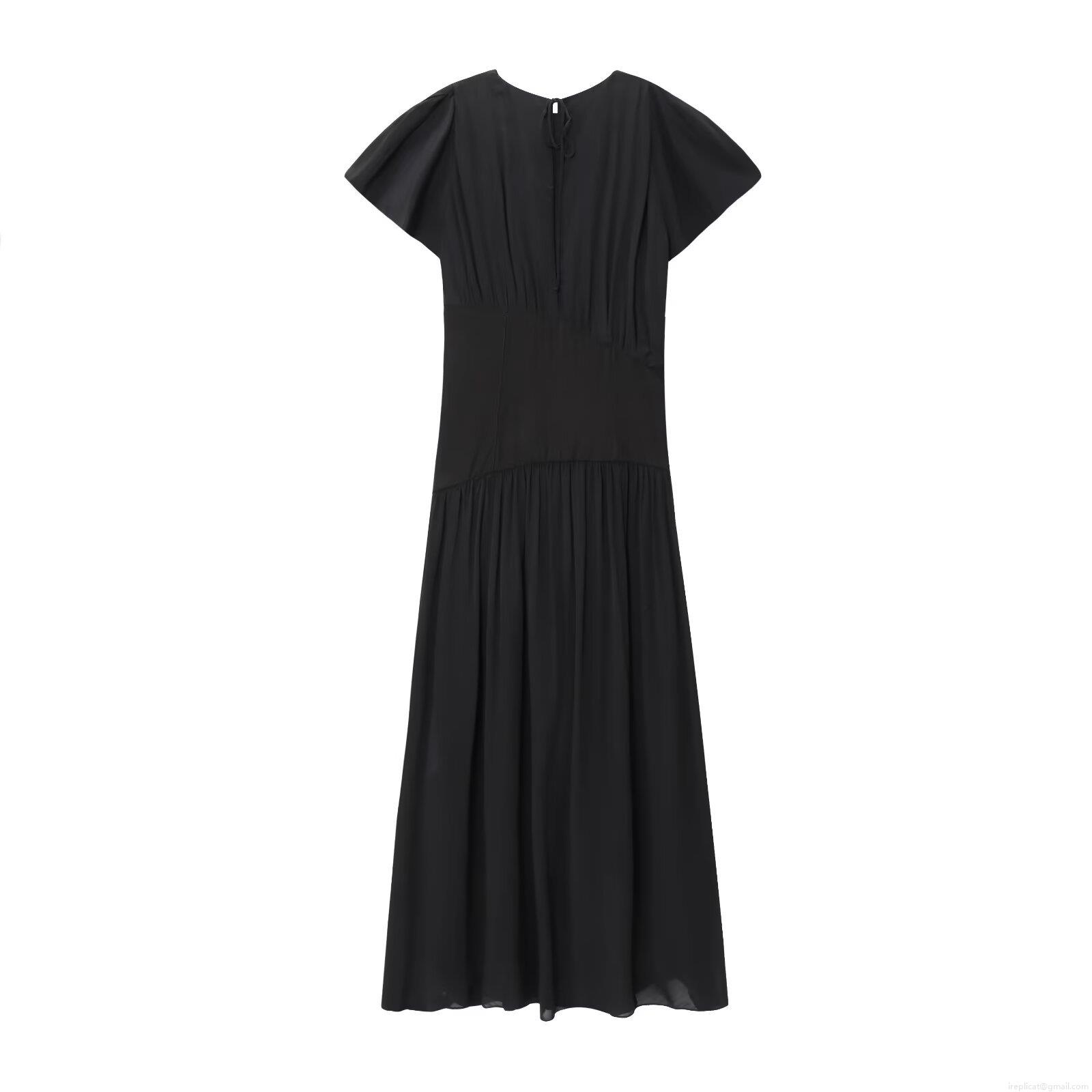 Women's Elegant Short Sleeve Maxi Dress Solid Color Pleated Patchwork Waist Tie Polyester A-Line Evening Party Gown Chic Lady Midi Dress