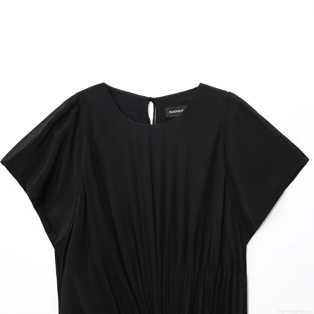 Solid Color, Splice, Pleats, Waist Tie, Back Collar Buttons