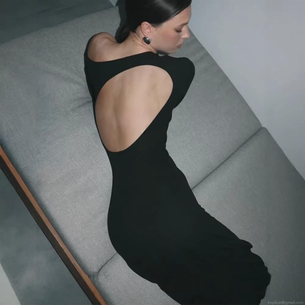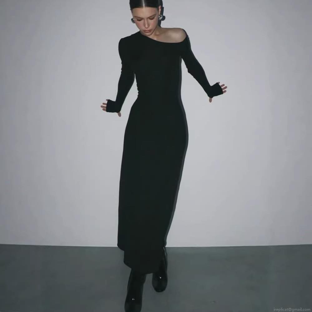 • Women's Elegant Slant Collar Maxi Dress Backless Bodycon Long Sleeve Floor Length Solid Color Elastic Polyester Slim Fit Evening Party Club Wear