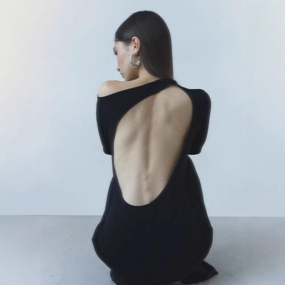 Solid Color, Backless, Asymmetrical Collar, Cutout, Asymmetrical Neckline