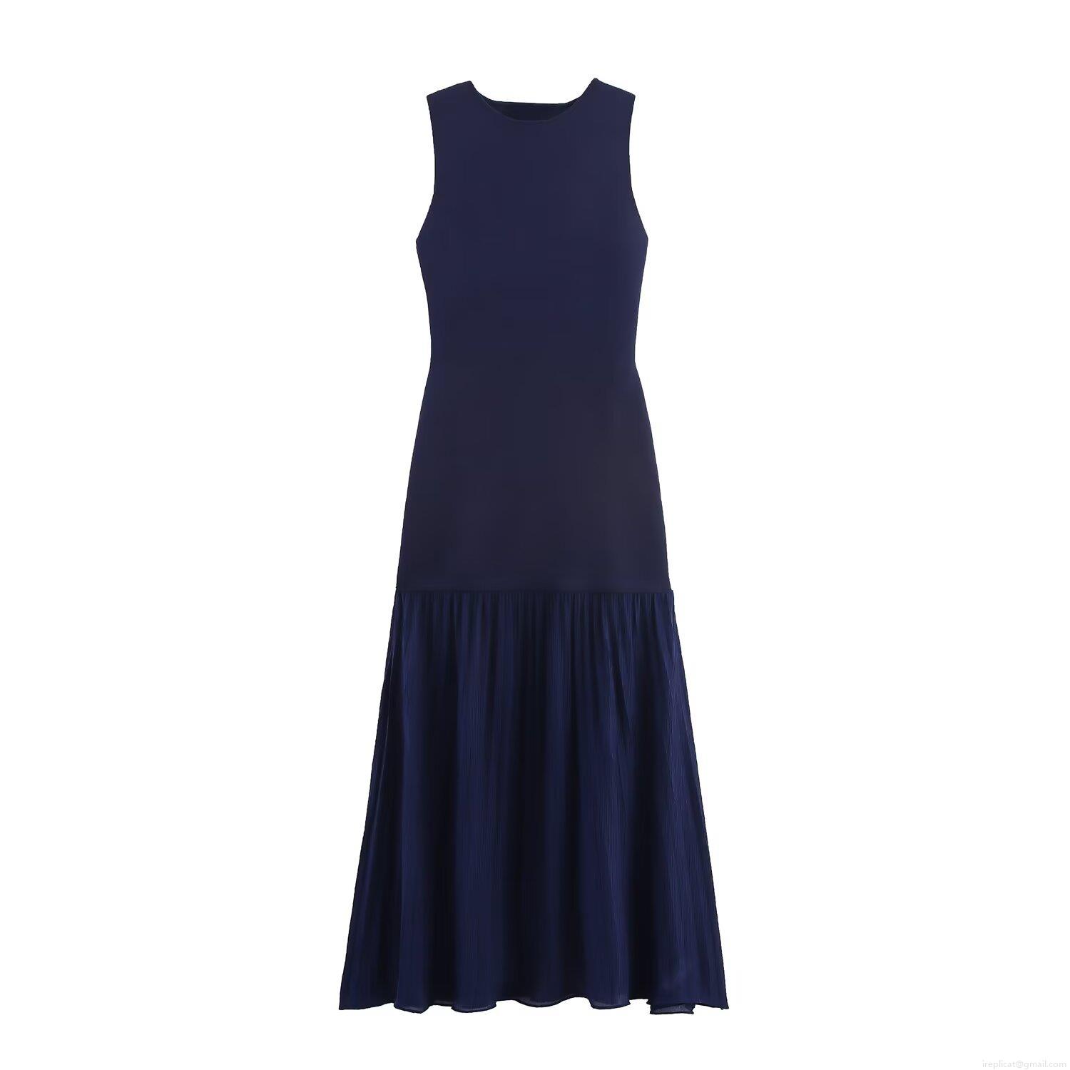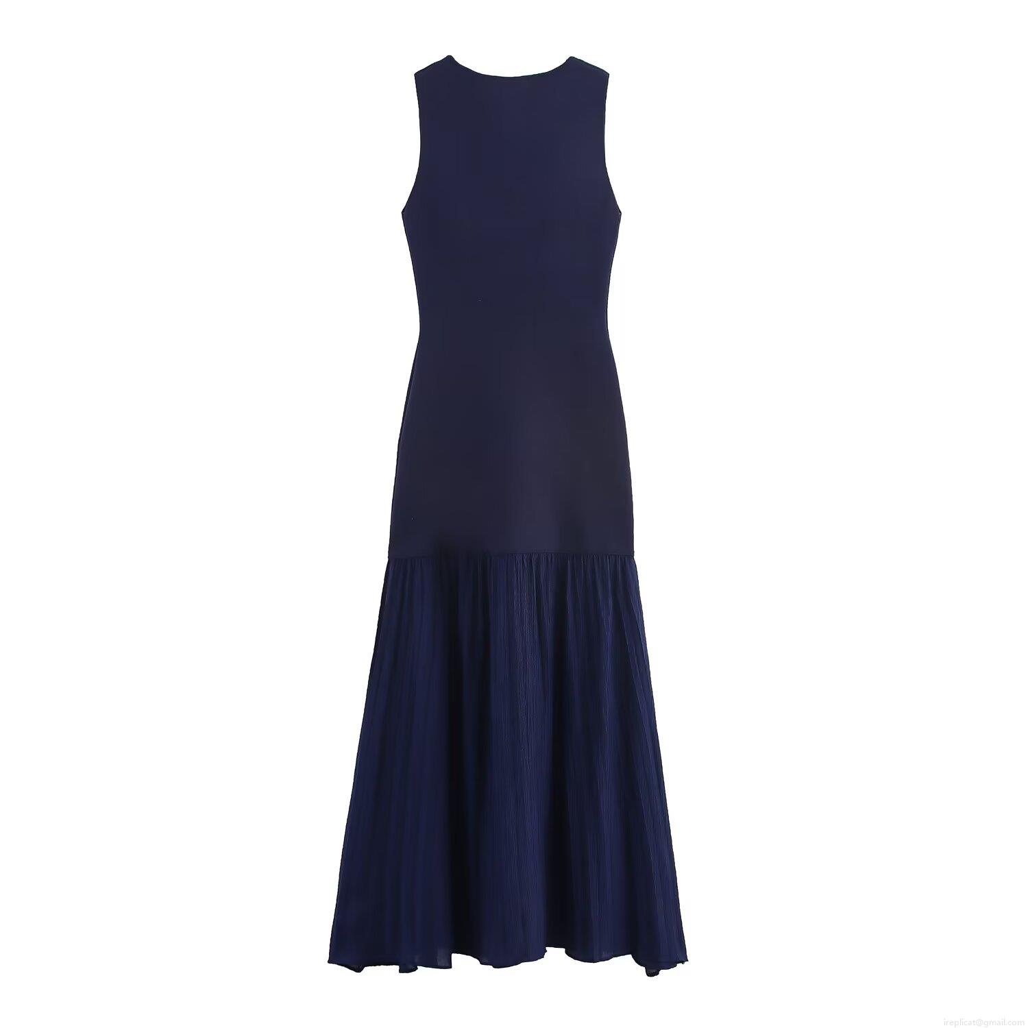 • Women's Elegant Sleeveless Maxi Dress With Knitted Patchwork And Pleated A-Line Hem Solid Color Crew Neck Long Dress For Party Dating Fashion Ladies Summer Clothing