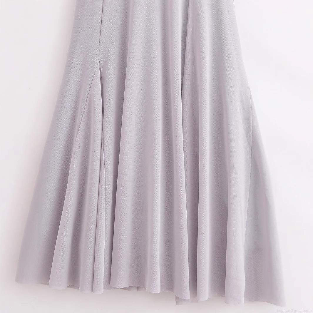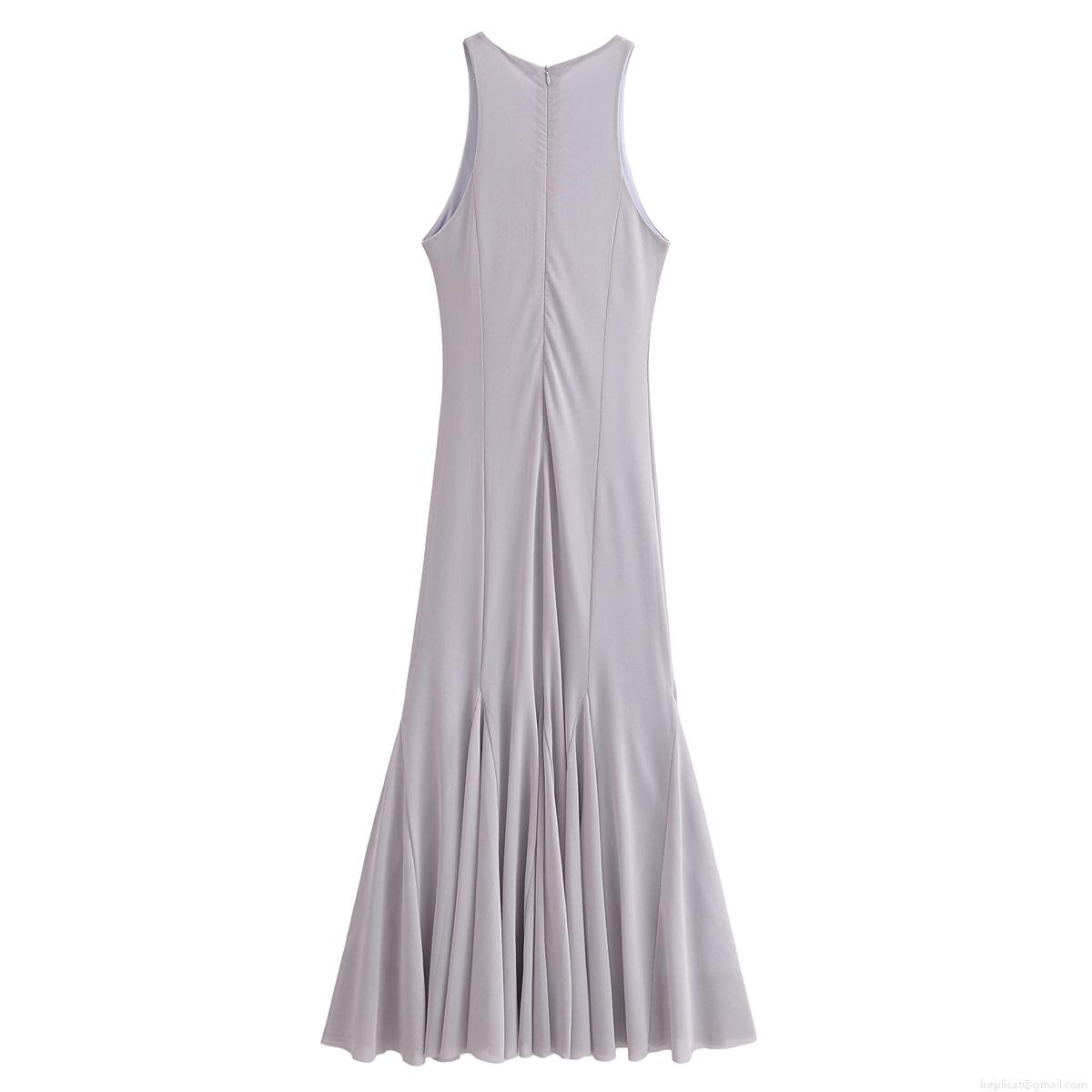 • Women's Elegant Sleeveless Mesh Maxi Dress 100% Polyester Solid Color Round Neck Swing Party Evening Long Dress For Ladies Spring Summer Fashion