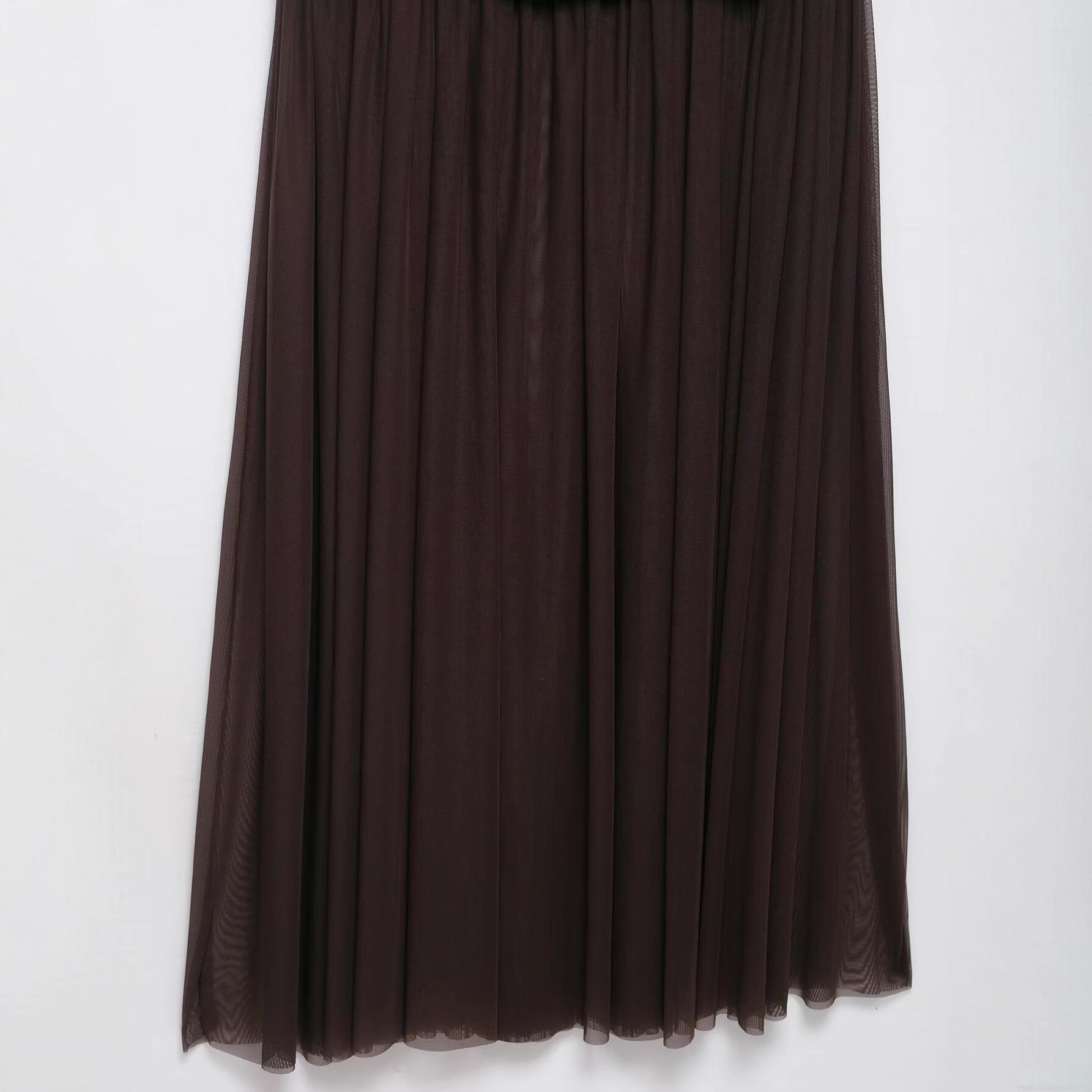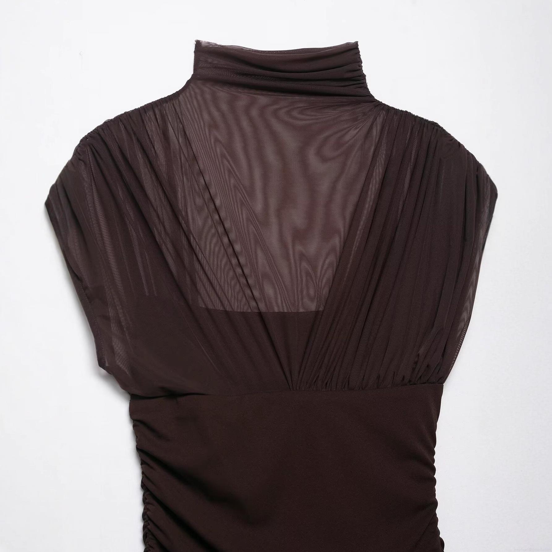 • Women's Elegant Sleeveless Mesh Patchwork Maxi Dress Stand Collar Pleated Ruched Slim Fit Polyester Solid Color Long Dress For Party Club Streetwear
