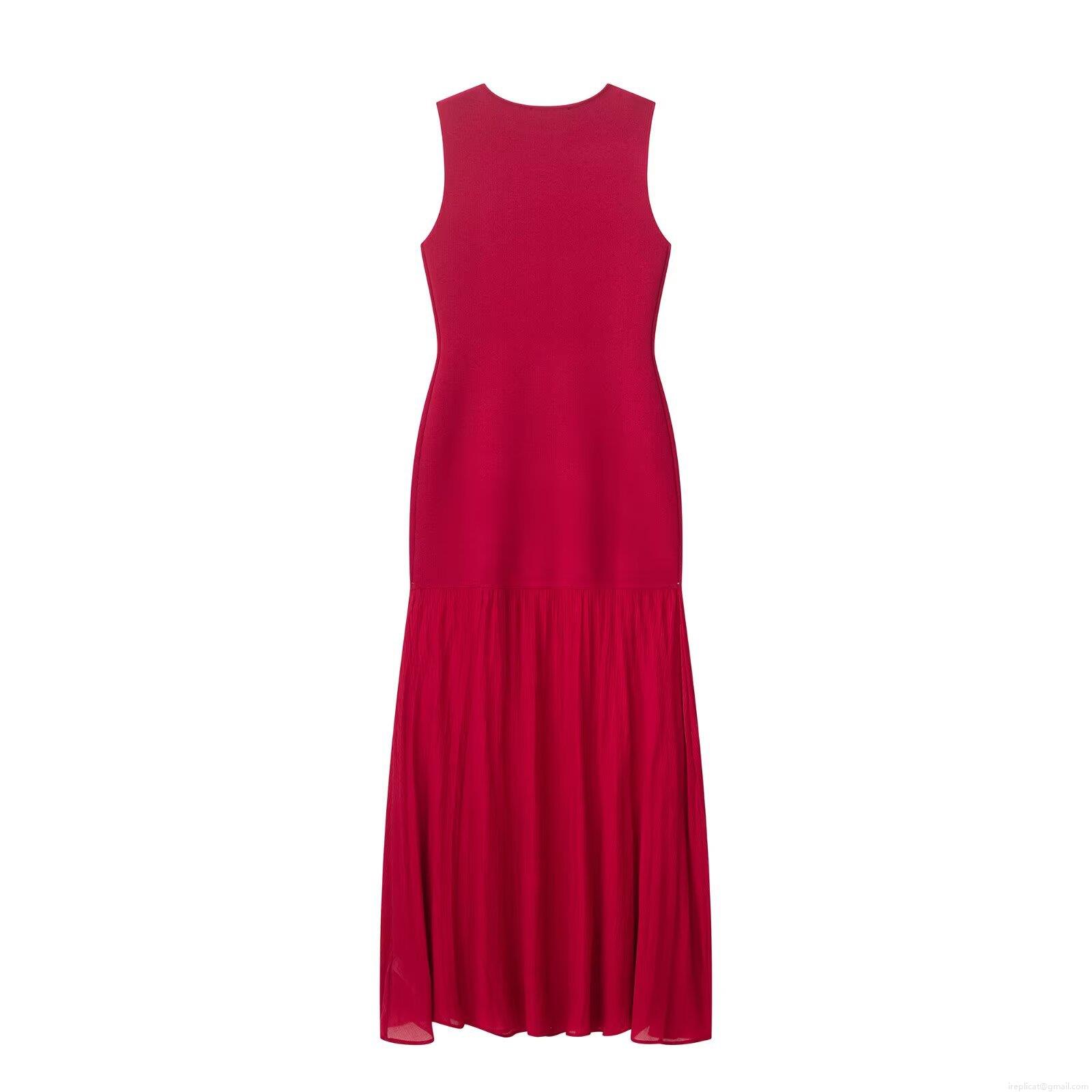 • Women's Elegant Sleeveless Round Neck Knit Patchwork Maxi Dress Pleated High Waist Long A-Line Party Dress Summer Streetwear Casual Dress