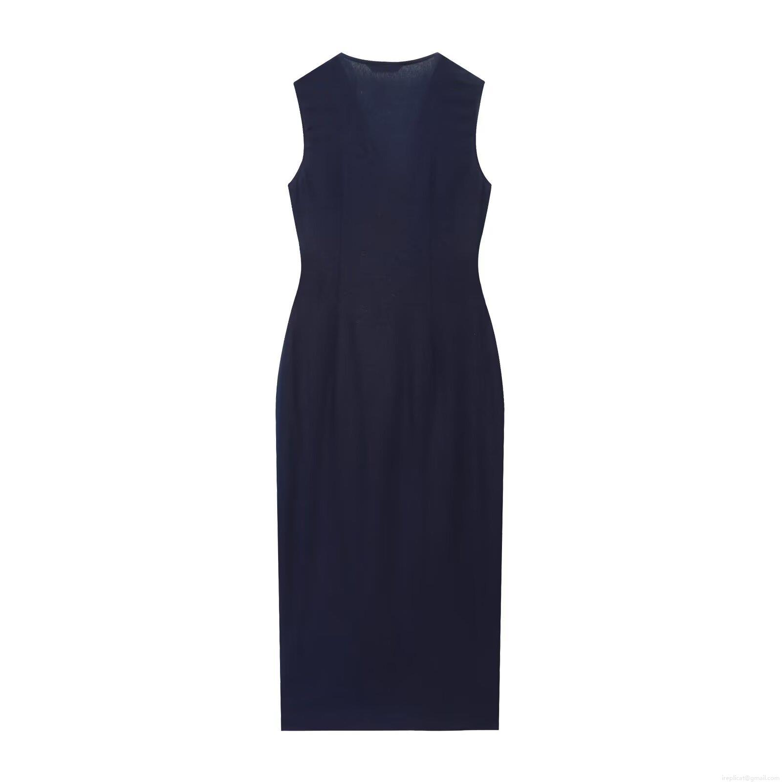 Women's Elegant Sleeveless V Neck Maxi Dress With Gold Flower Buckle Belt Polyester Linen Blend Solid Color Slim Fit Evening Party Banquet Gown