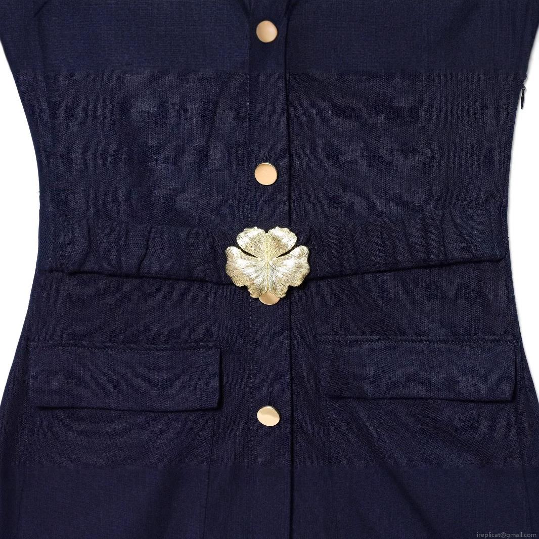 Solid Color, Gold Buttons, Flap Pocket, Gold Floral Waist Buckle